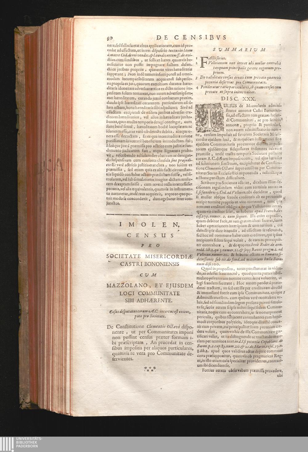 Disc. XXX. Imolen. Census. De Constitutione Clementis Octavi disponente, ut per Communitates[...]