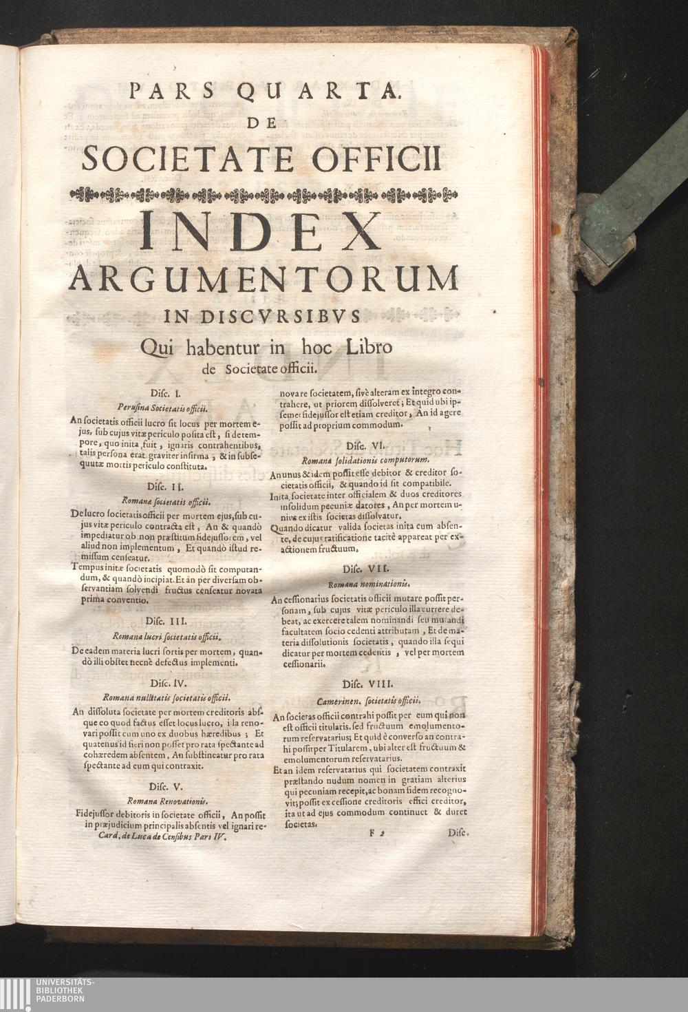Pars Quarta De Societate Officii Index Argumentorum In Discvrsibvs Qui habentur in[...]