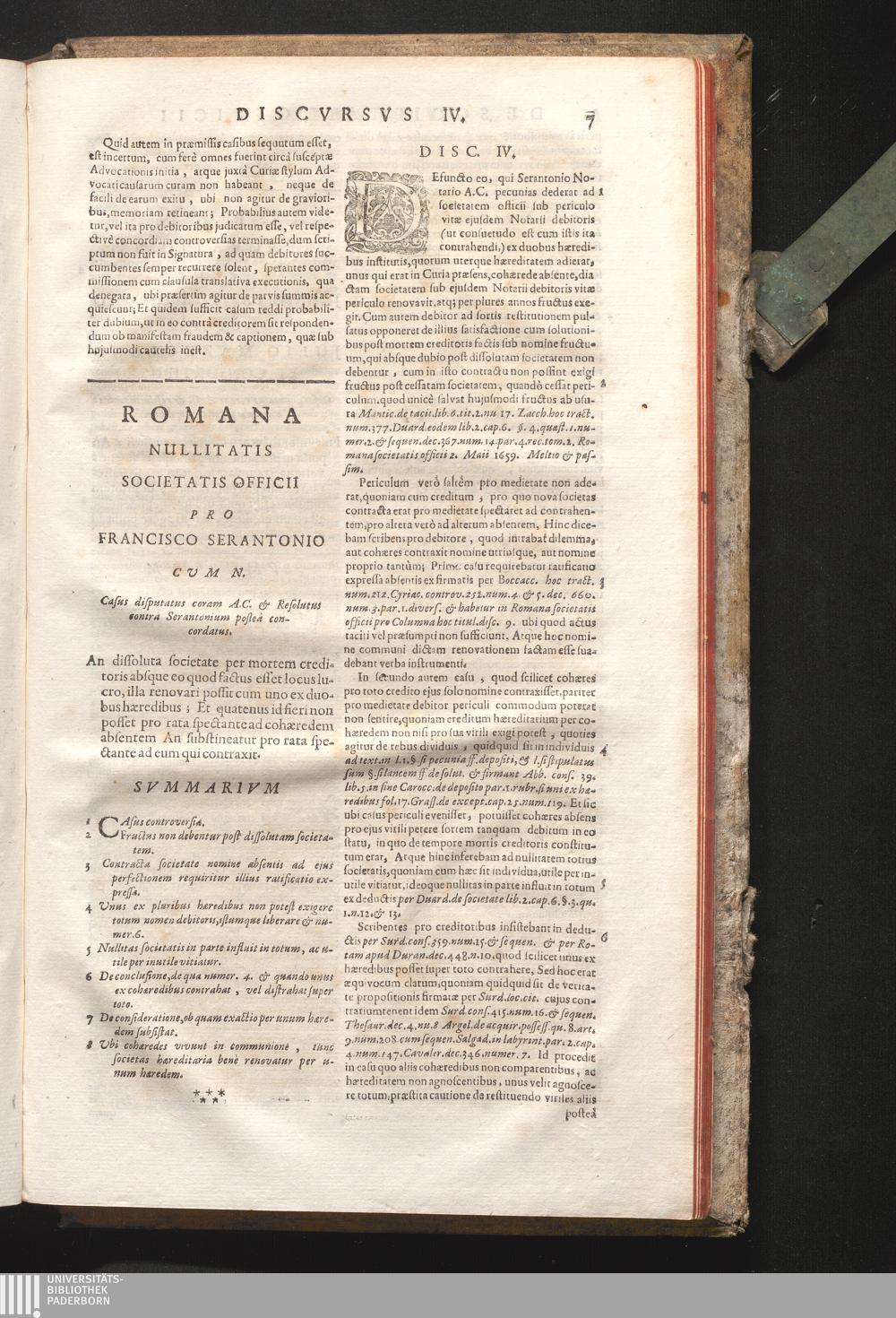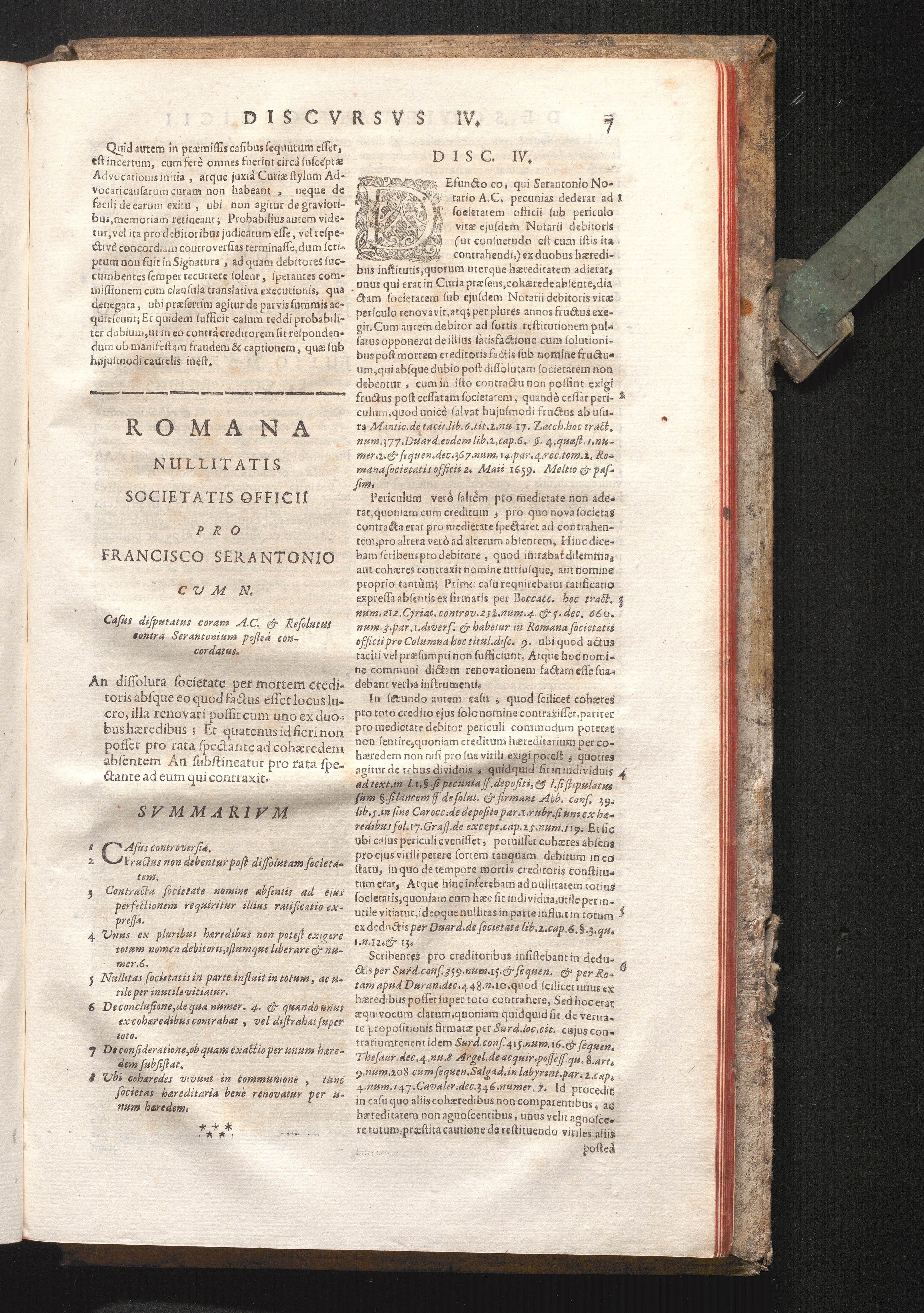 Disc. IV. Romana nullitatis societatis officii. An dissoluta societate per mortem[...]