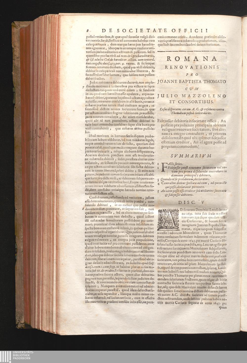 Disc. V. Romana Renovationis. Fidejussor debitoris in societate officii, An possit[...]