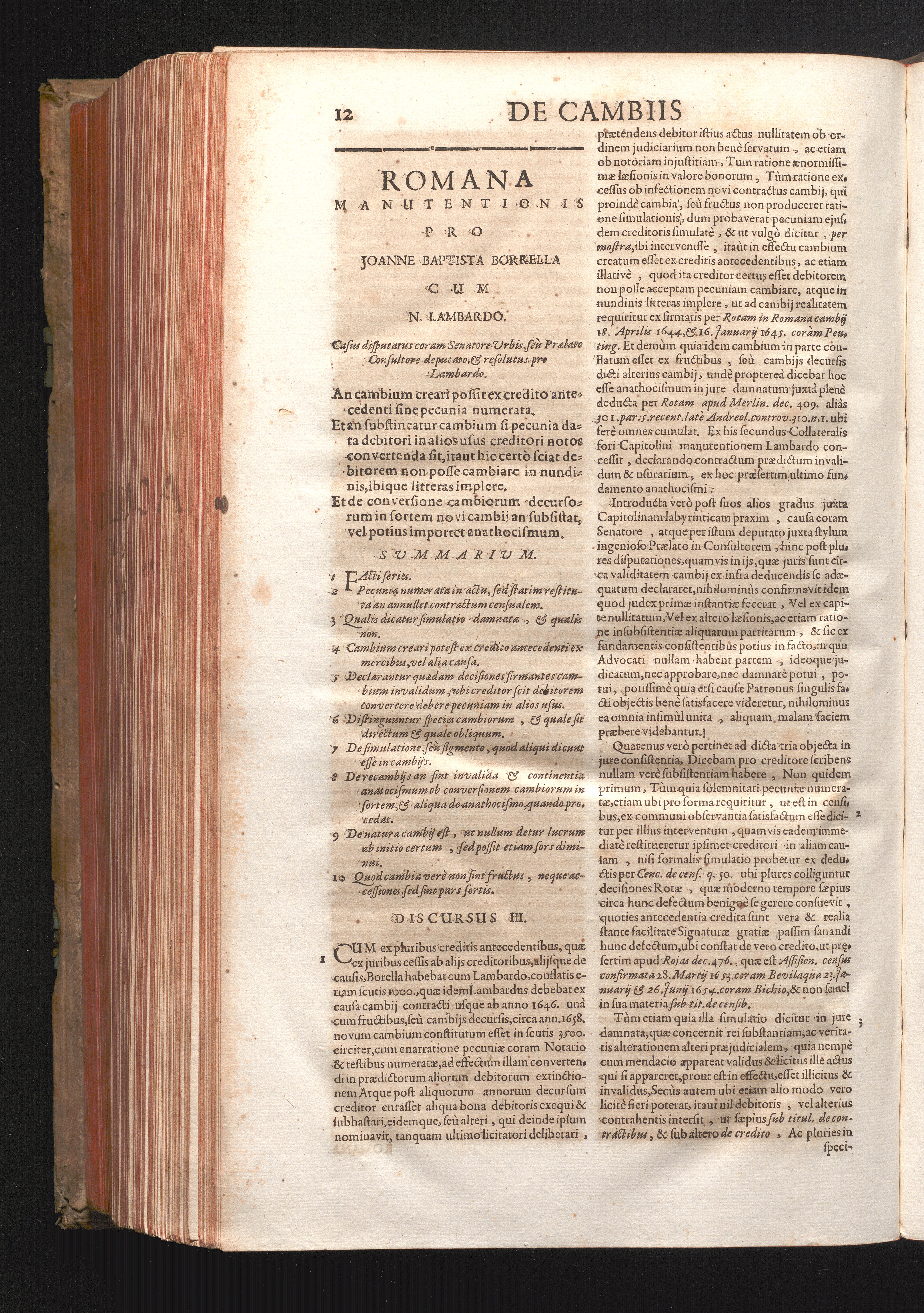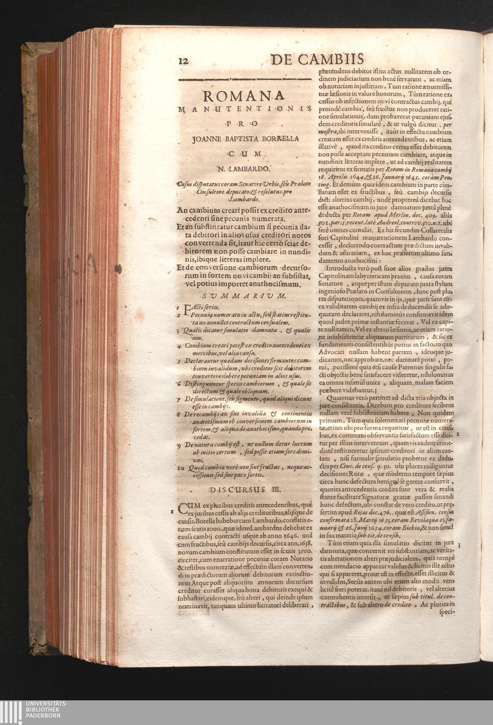 Disc. III. Romana manutentionis. An cabium creari possit ex credito antecedenti sine[...]