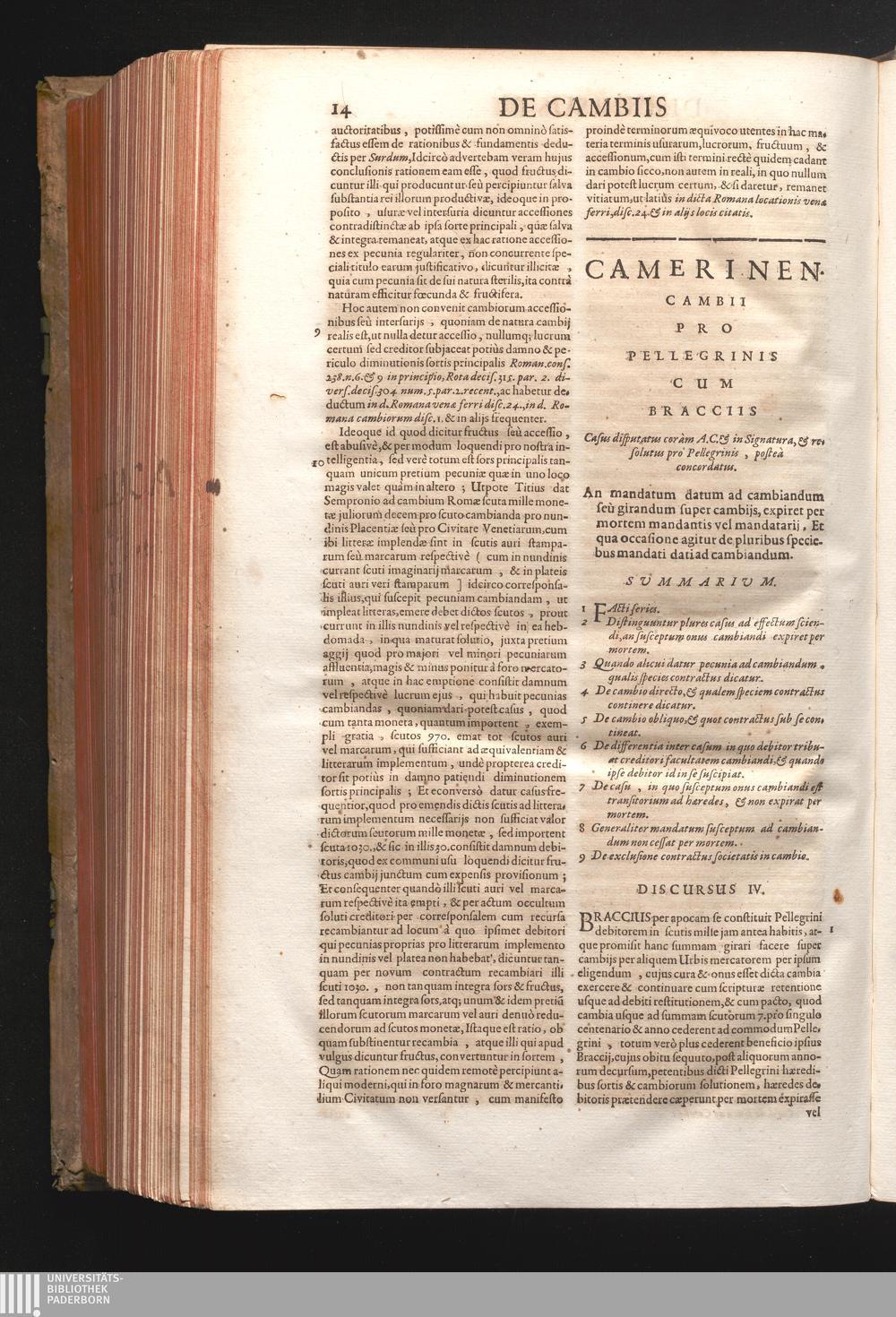 Disc. IV. Camerinen. Cambii. An mandatum datum ad cambiandum seu girandum super cambiis,[...]