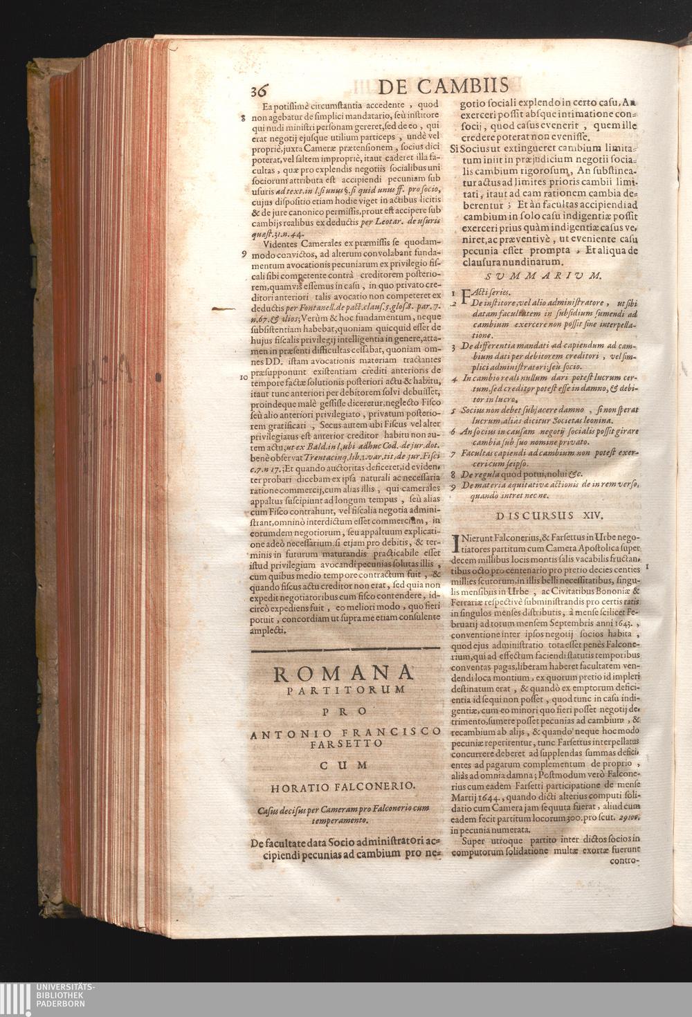 Disc. XIV. Romana partitorum. De facultate data socio administatori accipiendi pecunias[...]