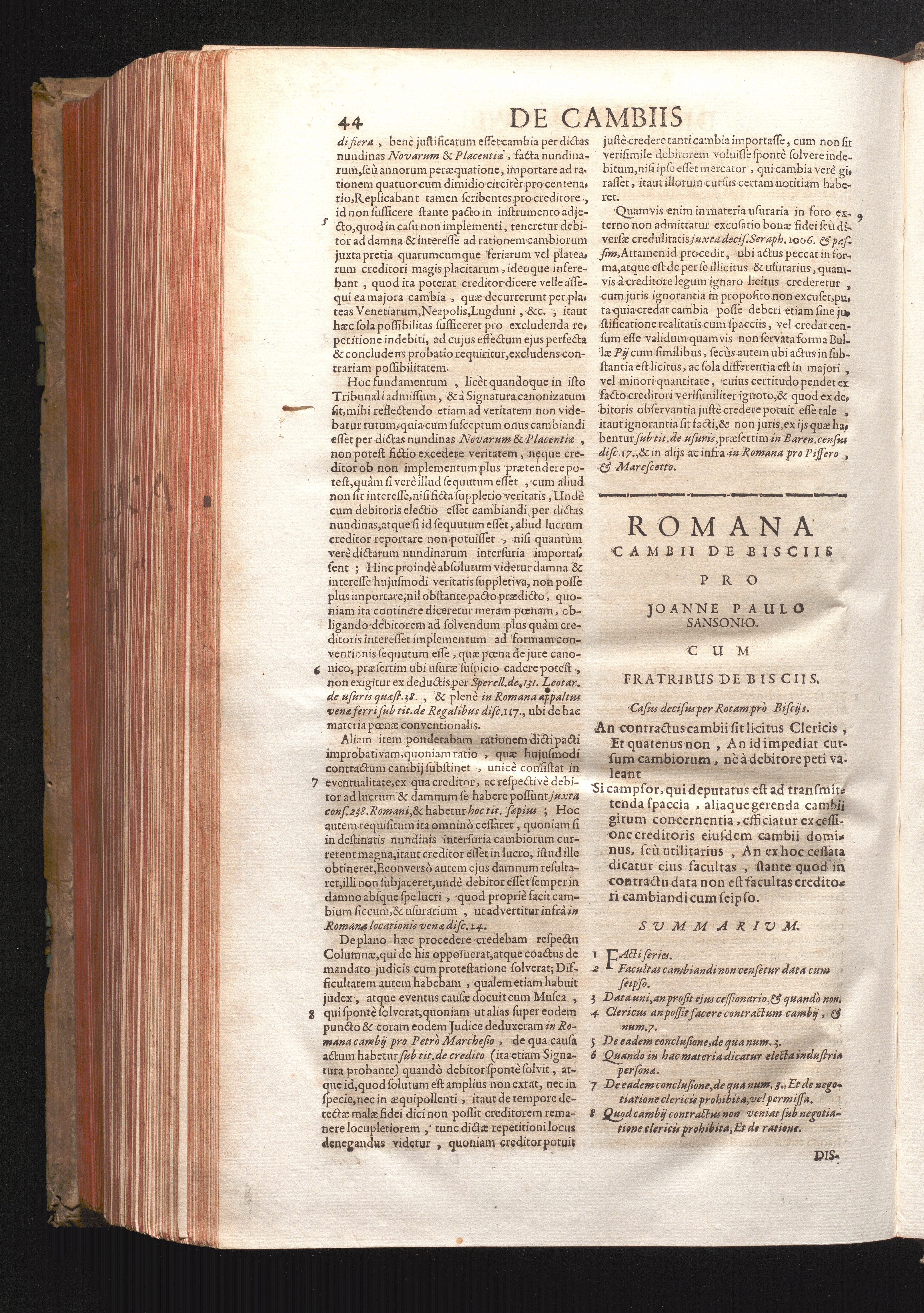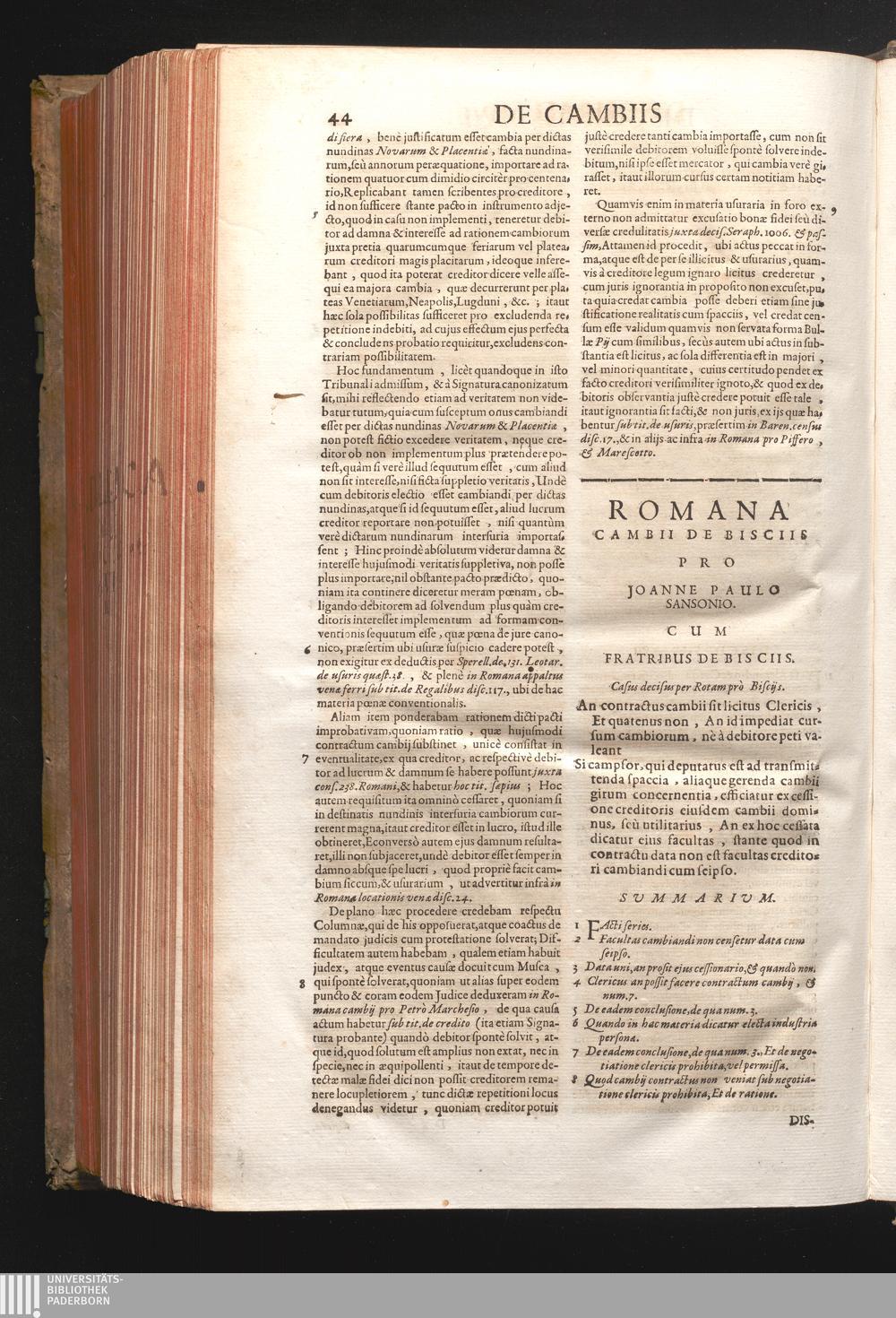 Disc. XVIII. Romana Cambii de Bisciis. An contractus cambii sit licitus clericis,[...]