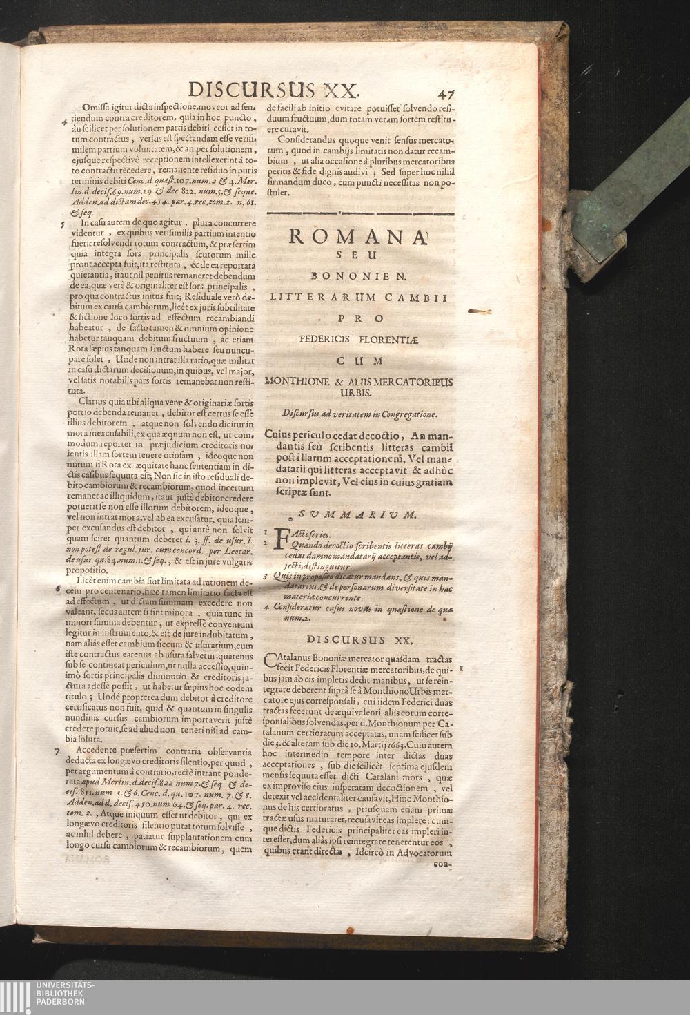 Disc. XX. Romana seu Bobonien. litterarum cambii. Cujus periculo cedat decoctio,[...]