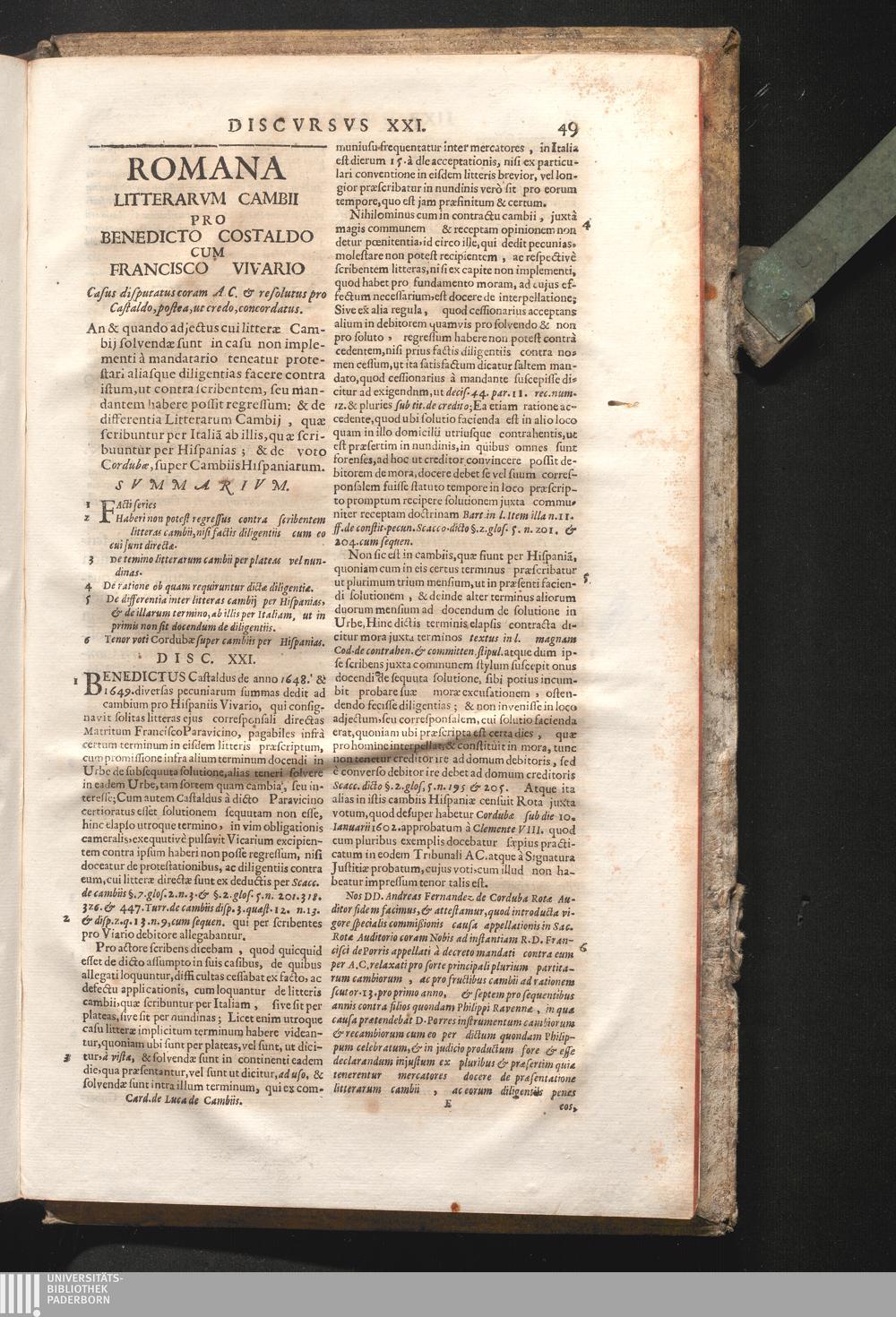Disc. XXI. Romana litterarum cambii. An & quando adjectus, cui litteræ cambii solvendæ[...]