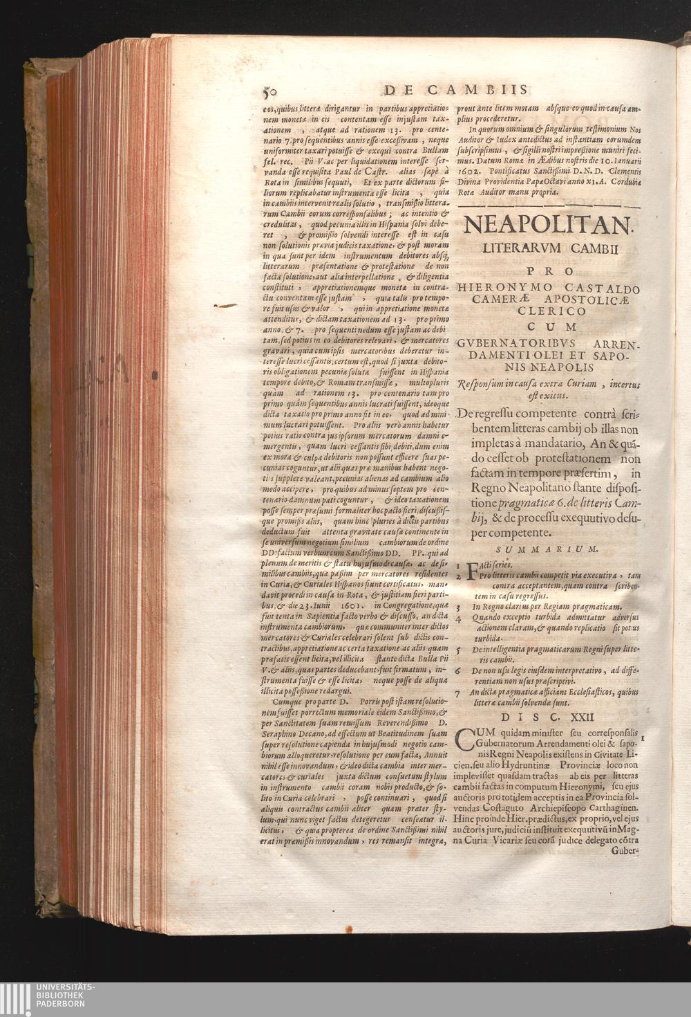 Disc. XXII. Neapolitana litterarum Cambii. De regressu competente contra scribentem[...]