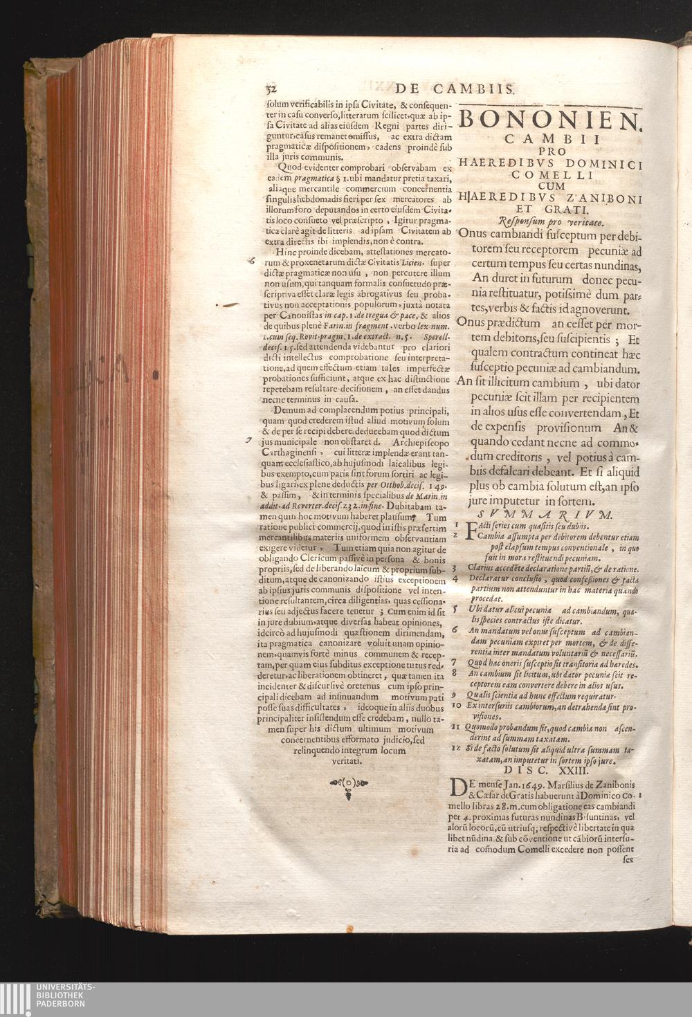 Disc. XXIII. Bobonien. Cambii. Onus cambiandi susceptum per debitorem seu receptorem[...]