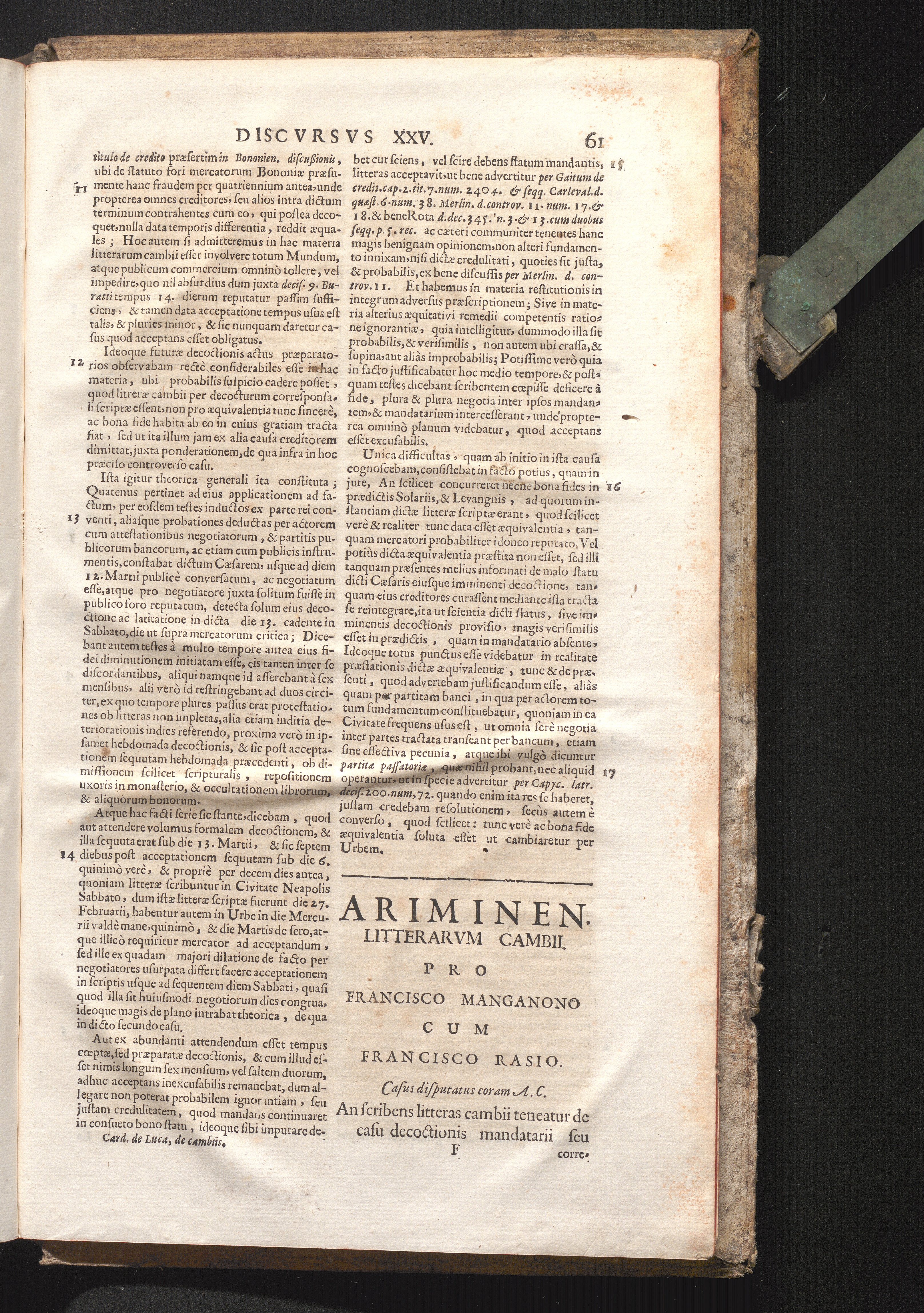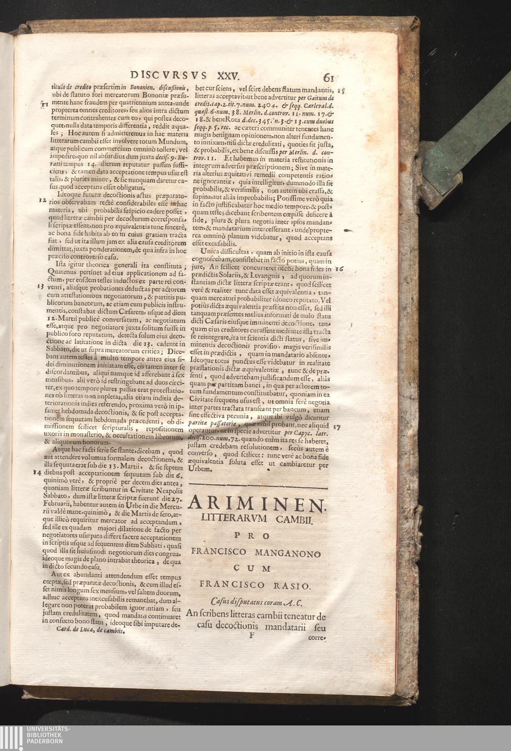 Disc. XXVI. Ariminen. litterarum cambii. An scribens cambii teneatu[r] de casu decoctionis[...]