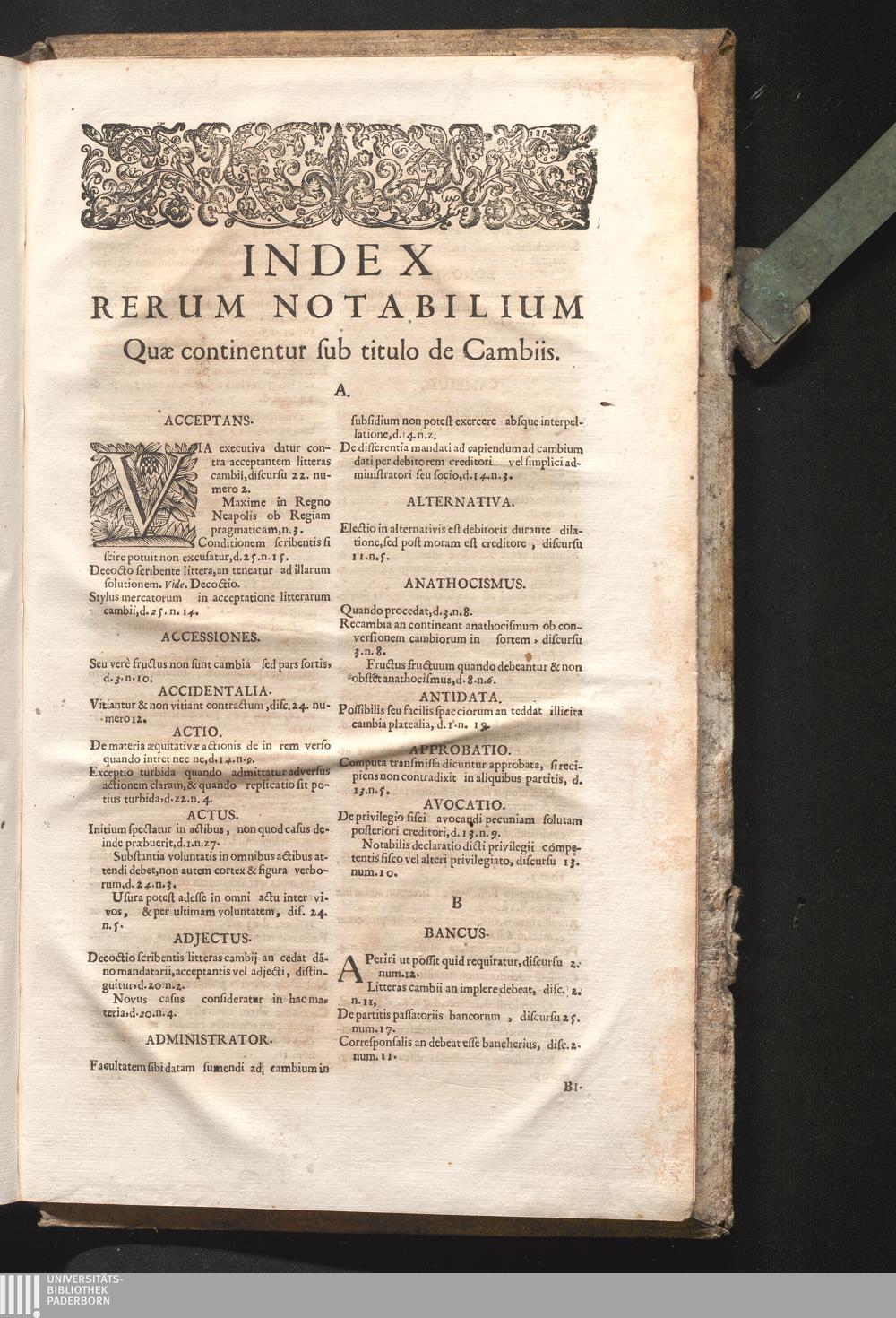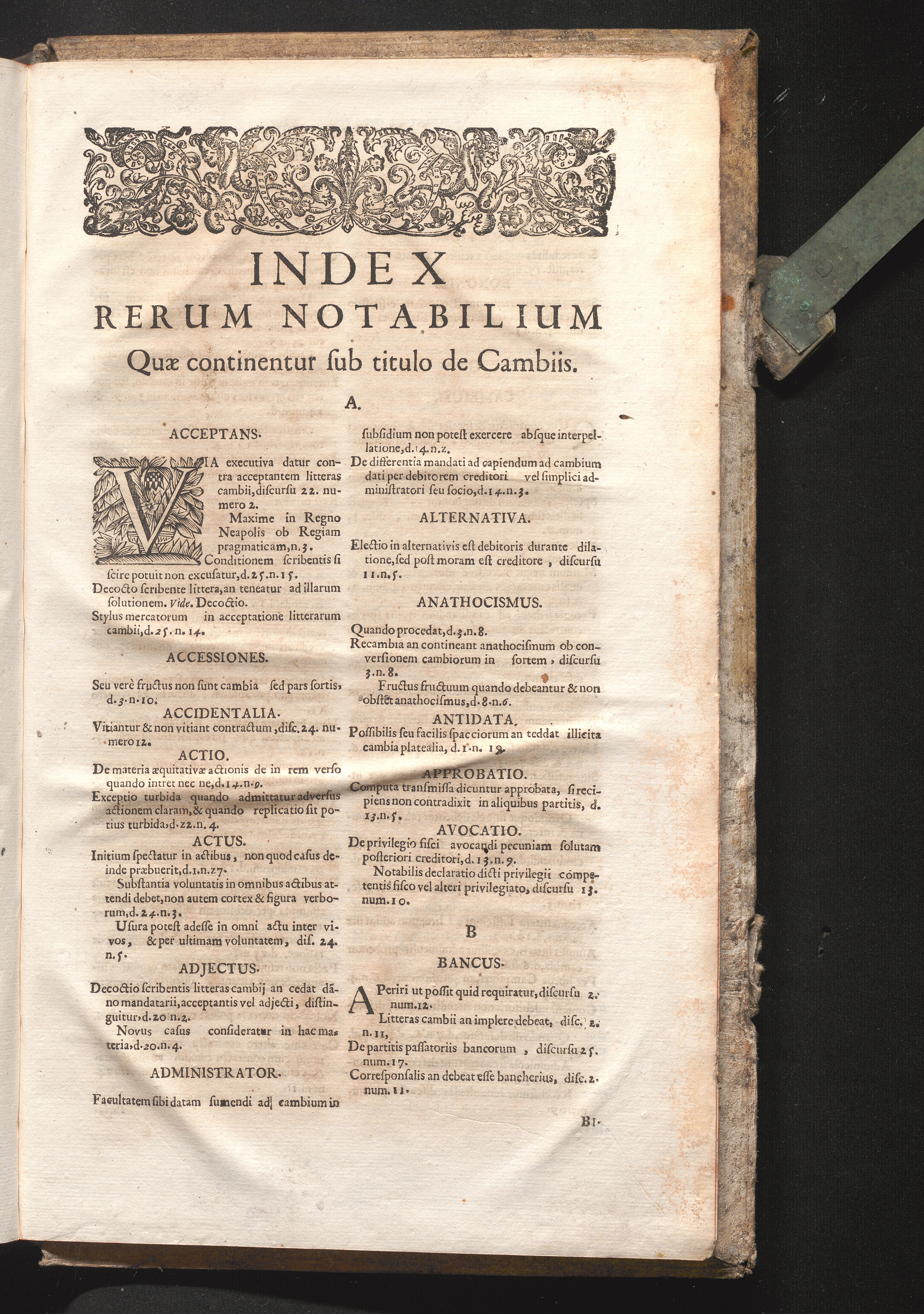Index Rerum Notabilium Quæ continentur sub titulo de Cambiis.