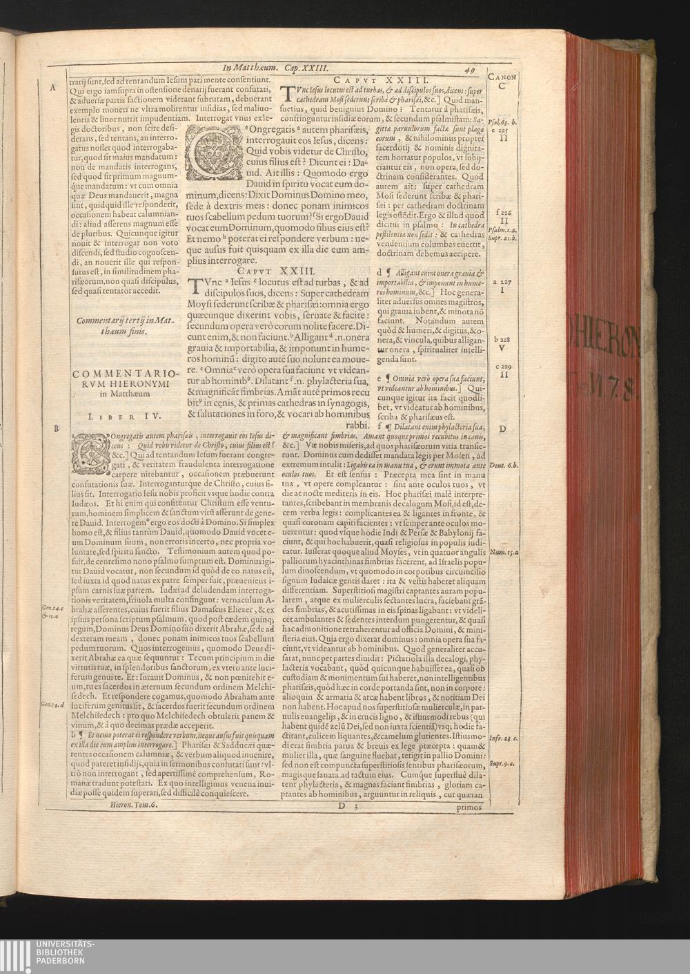 Tomvs VI (1616) Continens Commentaria In Matthaevm, Et Epistolas Pavli Ad Galatas, Ad Ephesios, ad Titum & Philemonem, & librum Didymi de spiritu sancto a Hieronymo versum ... Ad Fidem Vetvstissimorvm Exemplarivm, Dvcentis Circiter Svblatis Erroribvs Emendata