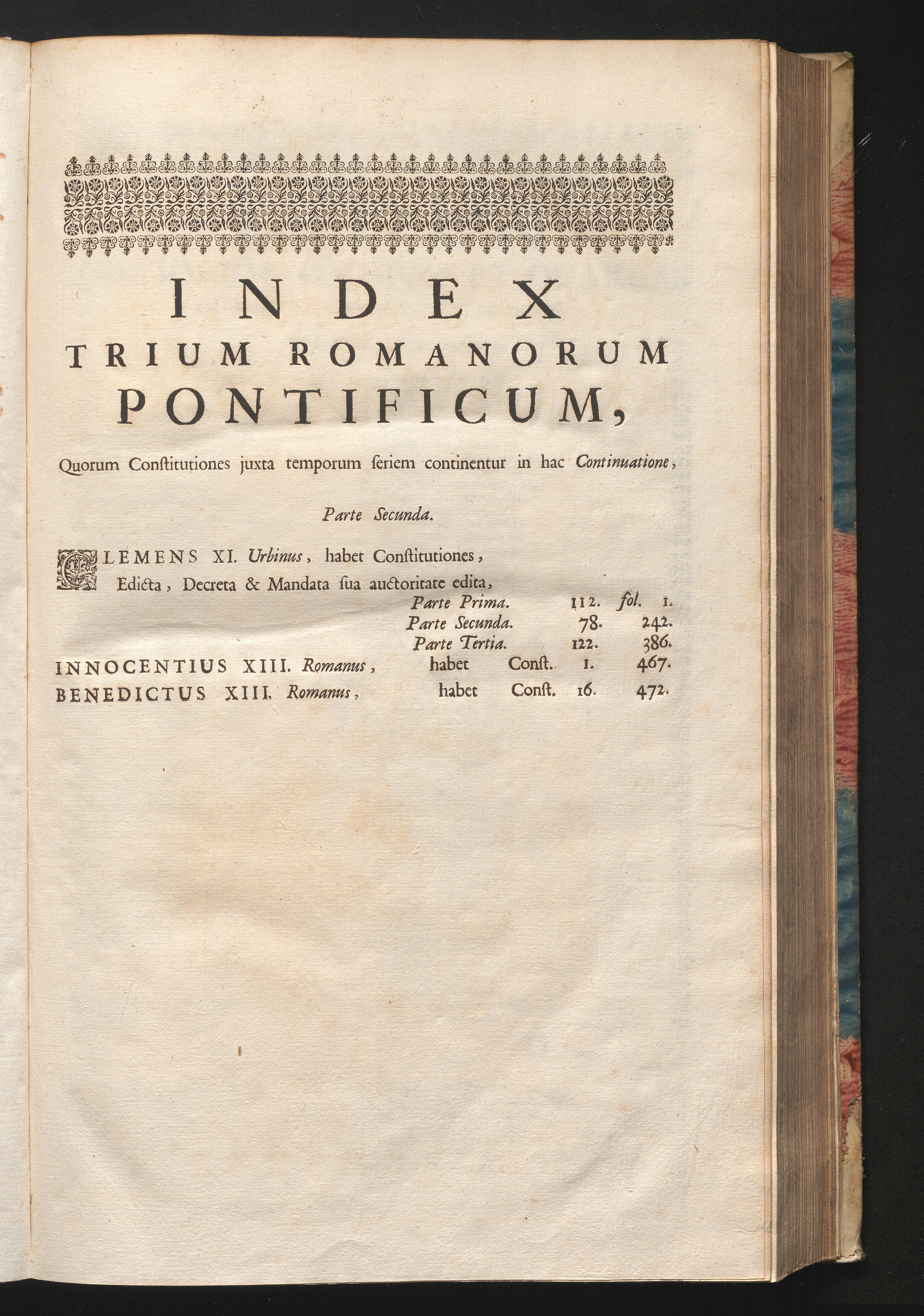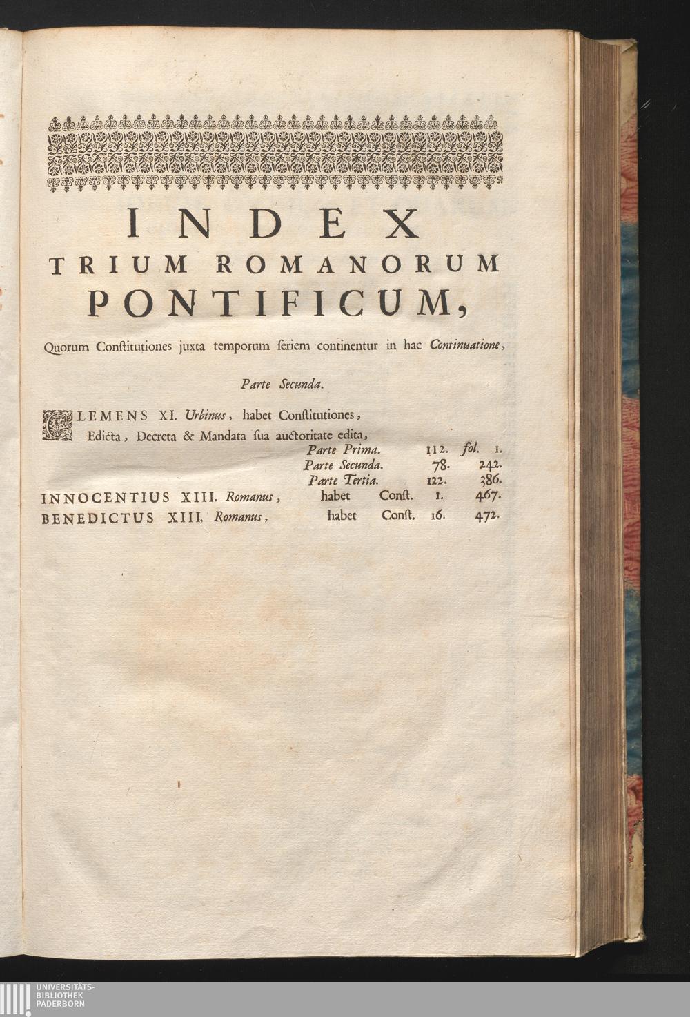 Index Trium Romanorum Pontificum, Quorum Constitutiones juxta temproum seriem continentur[...]