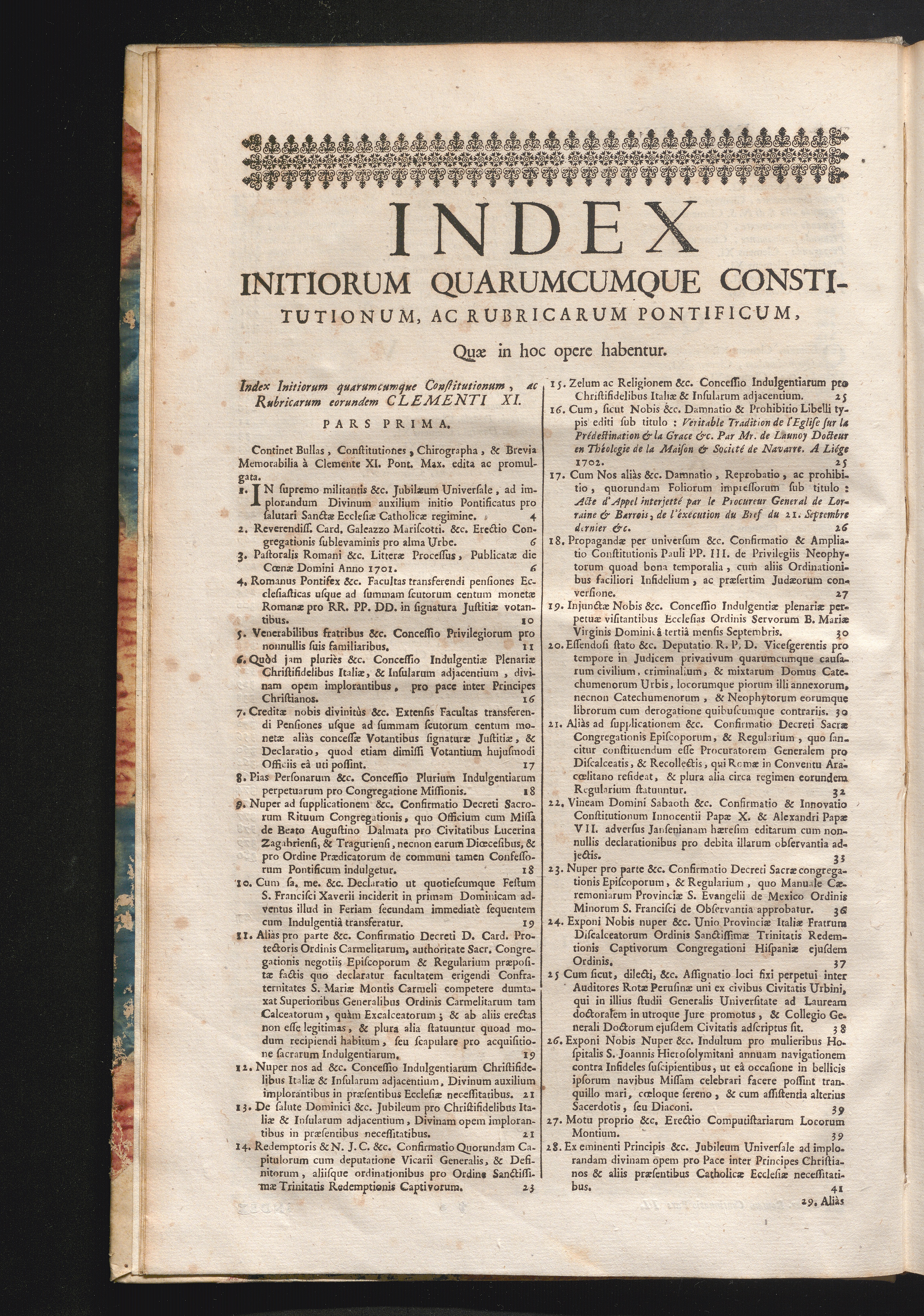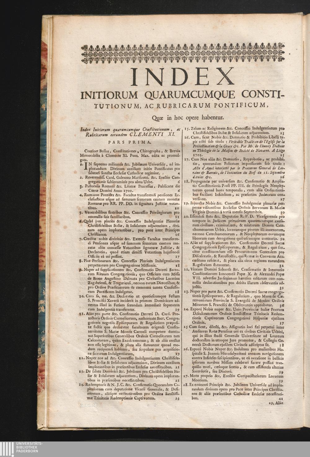 Index Initiorum Quarumcumque Constitutionum, Ac Rubricarum Pontificum, Quӕ in hoc[...]