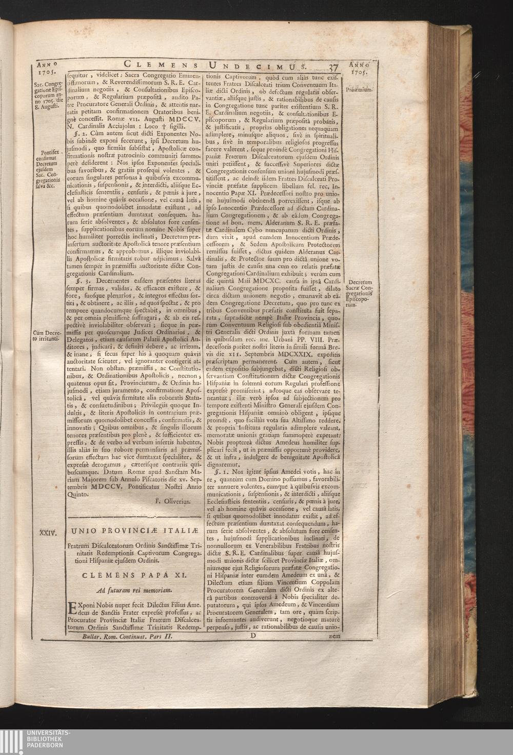 24. Exponi Nobis nuper &c. Unio Provinciӕ Italiӕ Fratrum Discalceatorum Ordinis Sanctissimӕ[...]