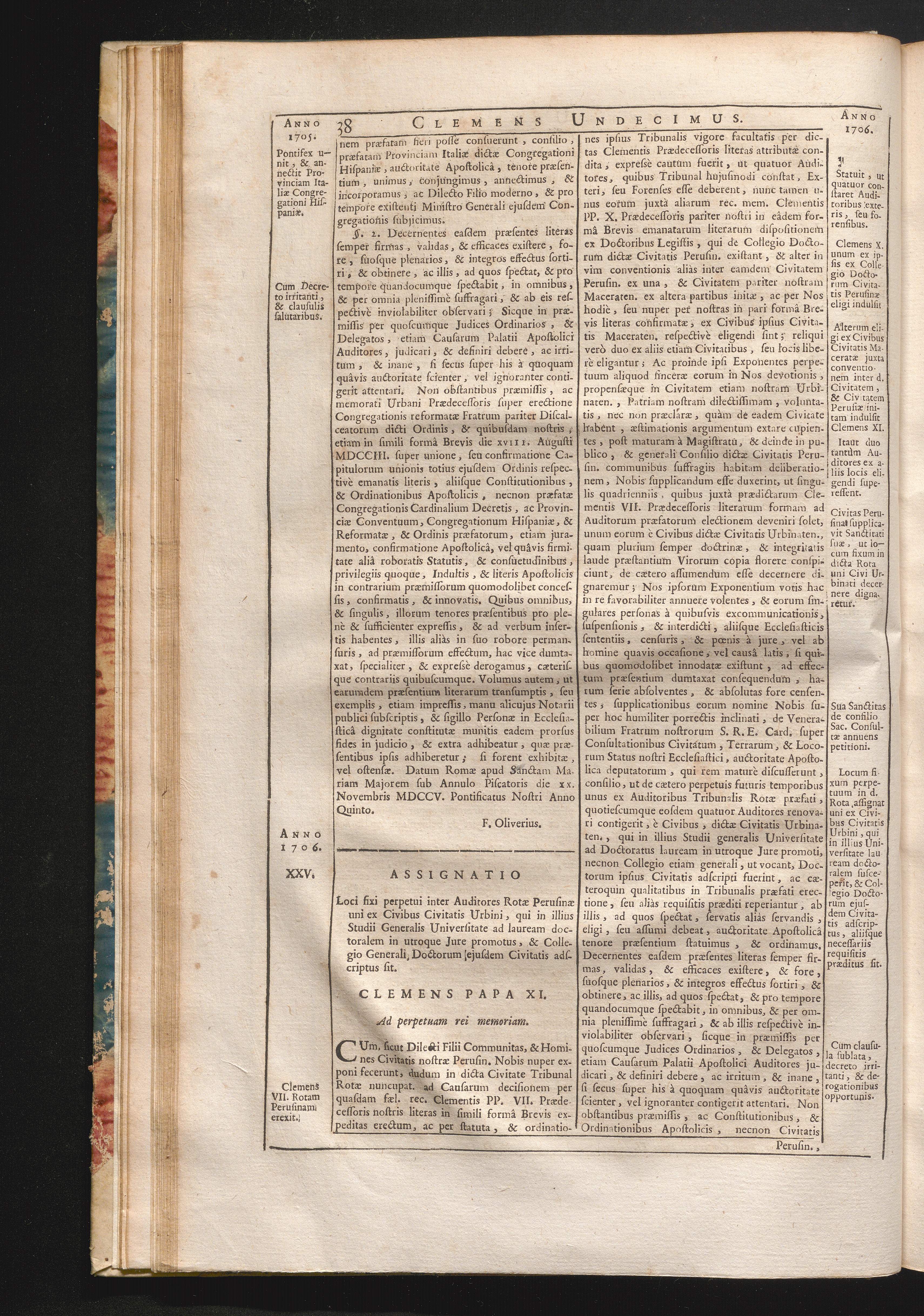 25. Cum sicut, dilecti, &c. Assignatio loci fixi perpetui inter Auditores Rotӕ Perusinӕ[...]