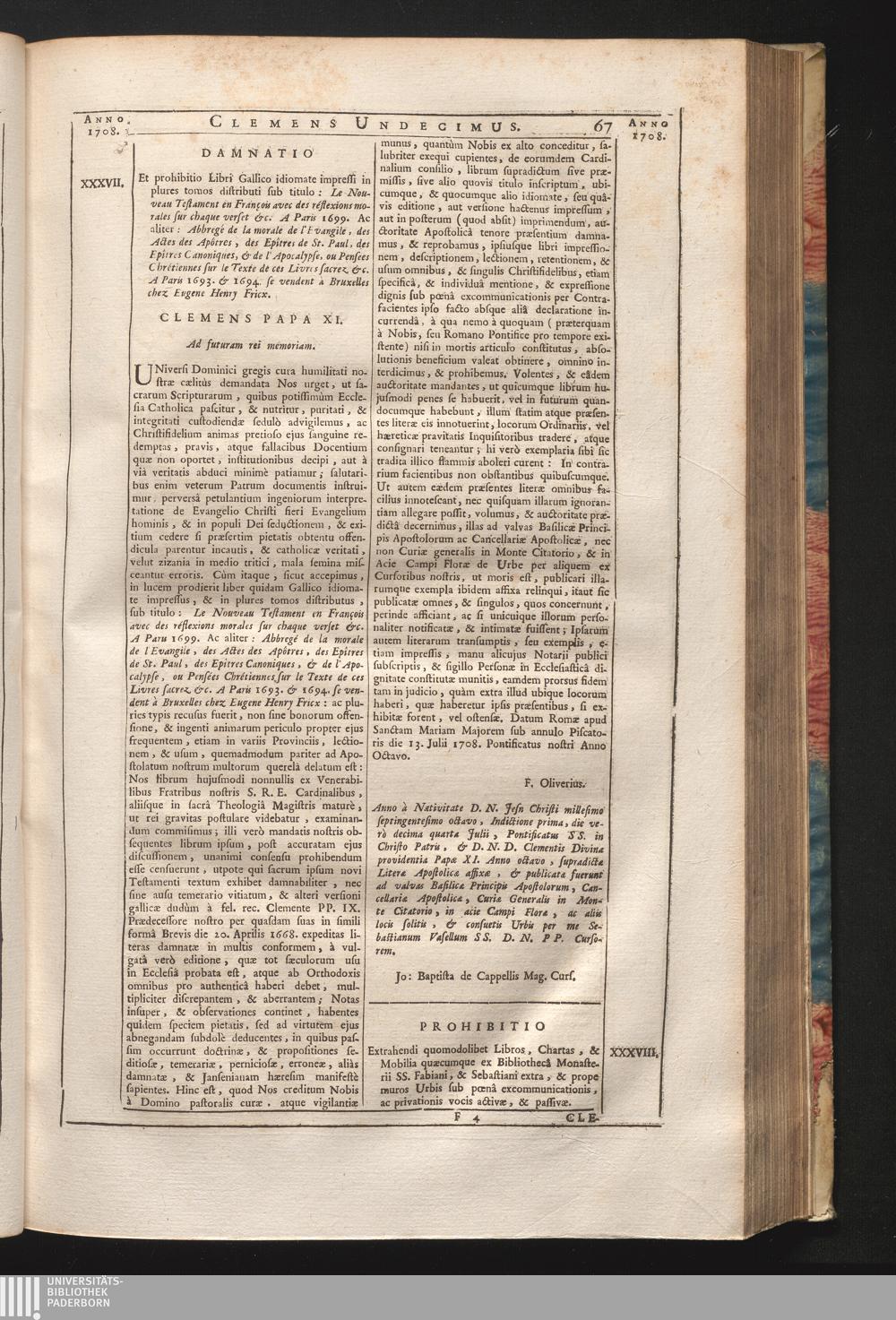 38. Cum sicut dilectus &c. Prohibitio extrahendi quomodolibet Libros Chartas, & Mobilia,[...]