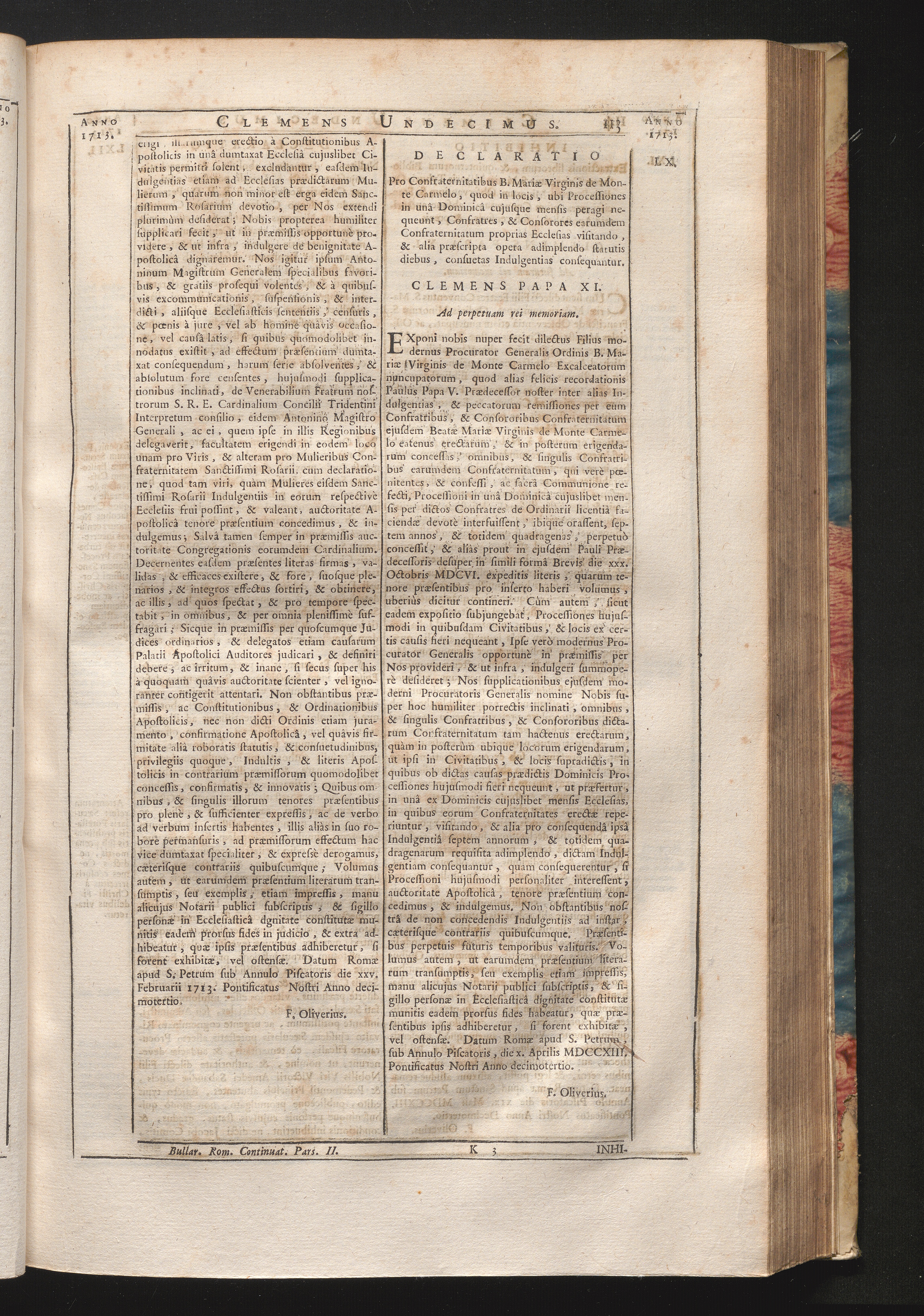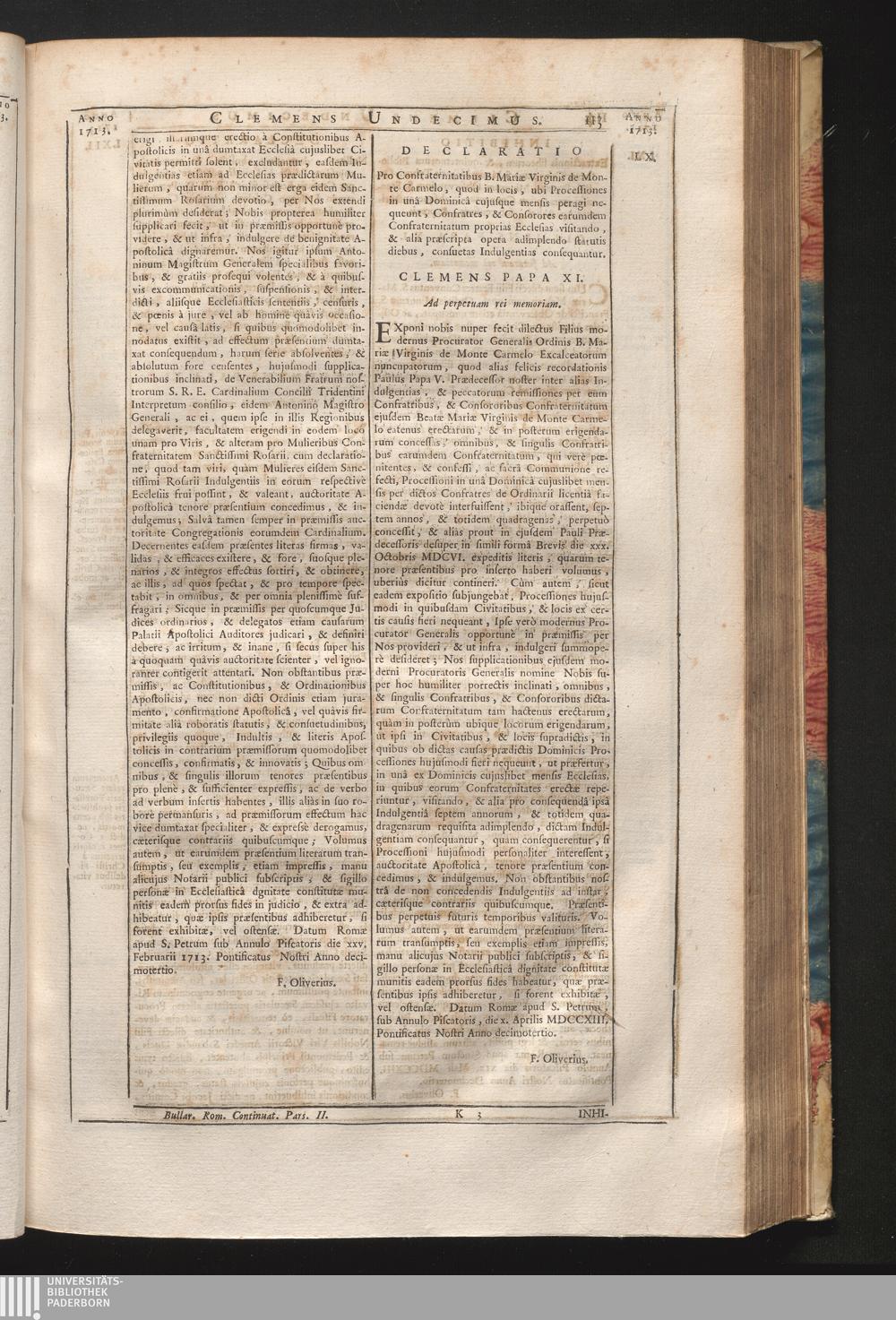 Index Initiorum quarumcumque Constitutionum, ac Rubricarum eorundem Clementi XI.