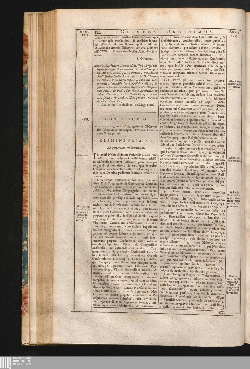 Index Initiorum quarumcumque Constitutionum, ac Rubricarum eorundem Clementi XI.