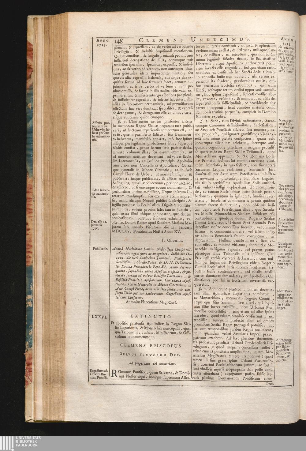 76. Romanus Pontifex &c. Extinctio & abolitio prӕtensӕ Apostolicӕ in Regno Siciliӕ[...]