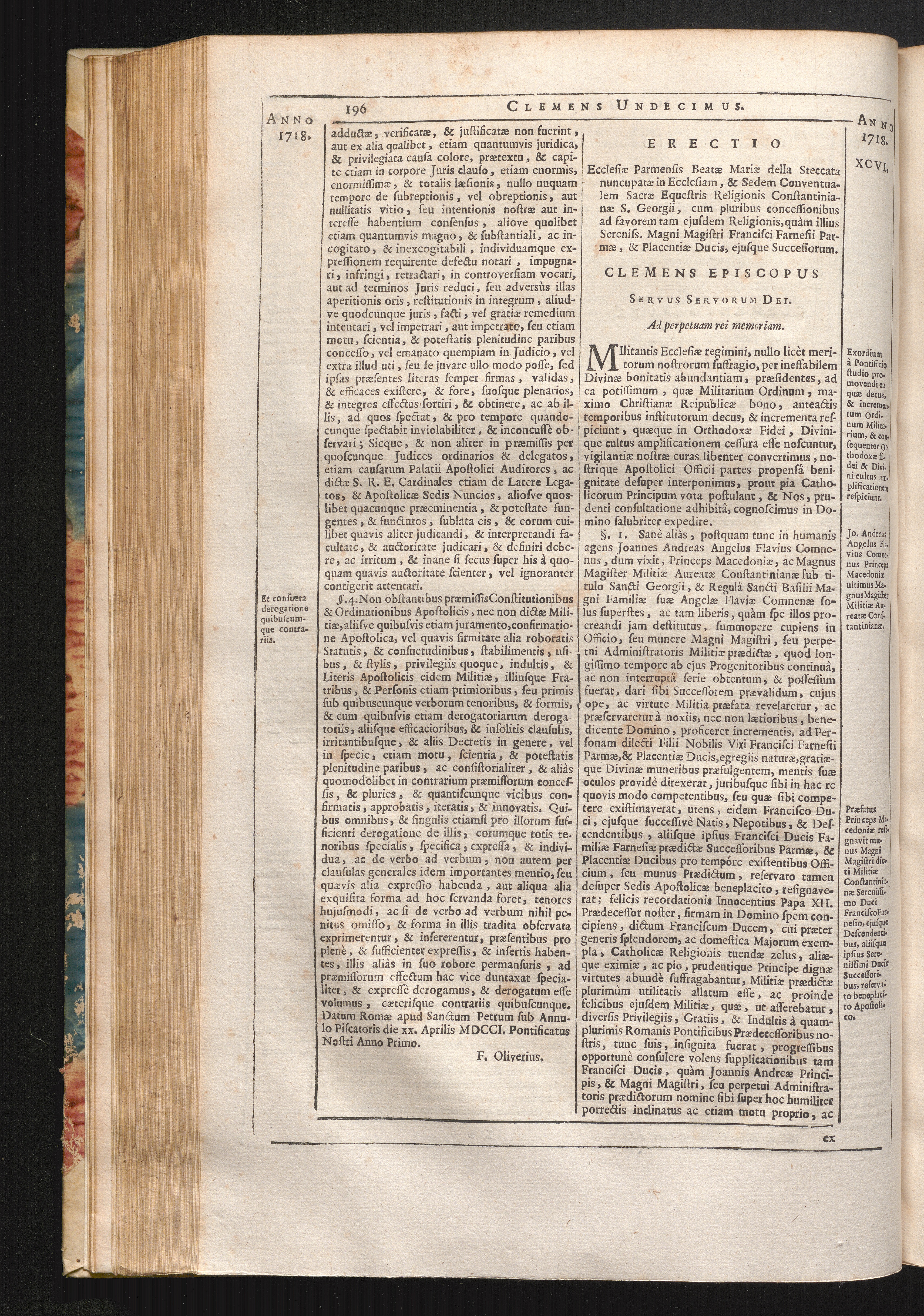 96. Militantis Ecclesiӕ &c. Erectio Ecclesiӕ Pirmensis Beatӕ Mariӕ dell Steccata[...]