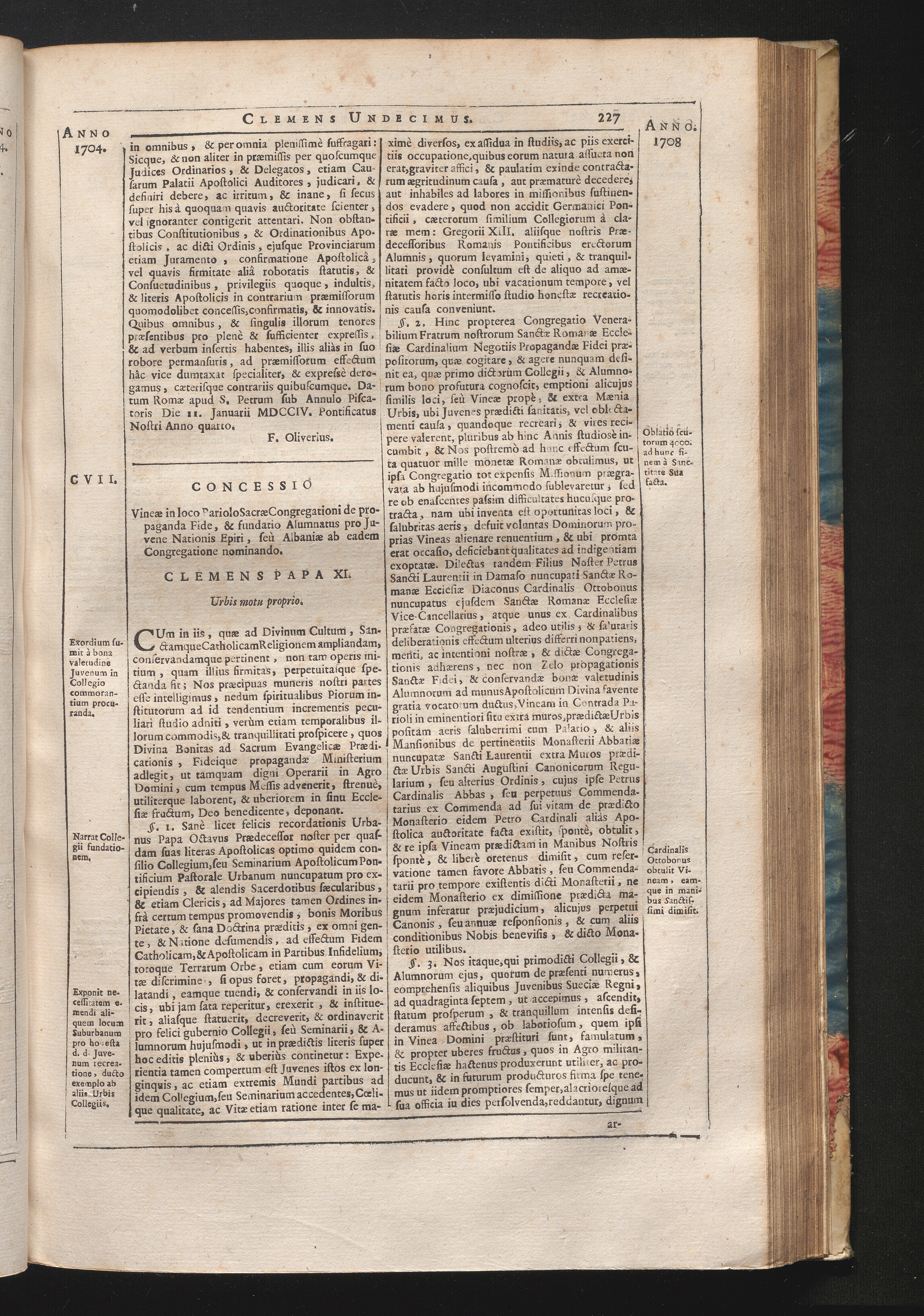 107. Cum in iis, &c. Concessio Vineӕ in loco Pariolo Sacrӕ Congregationi de Propaganda[...]
