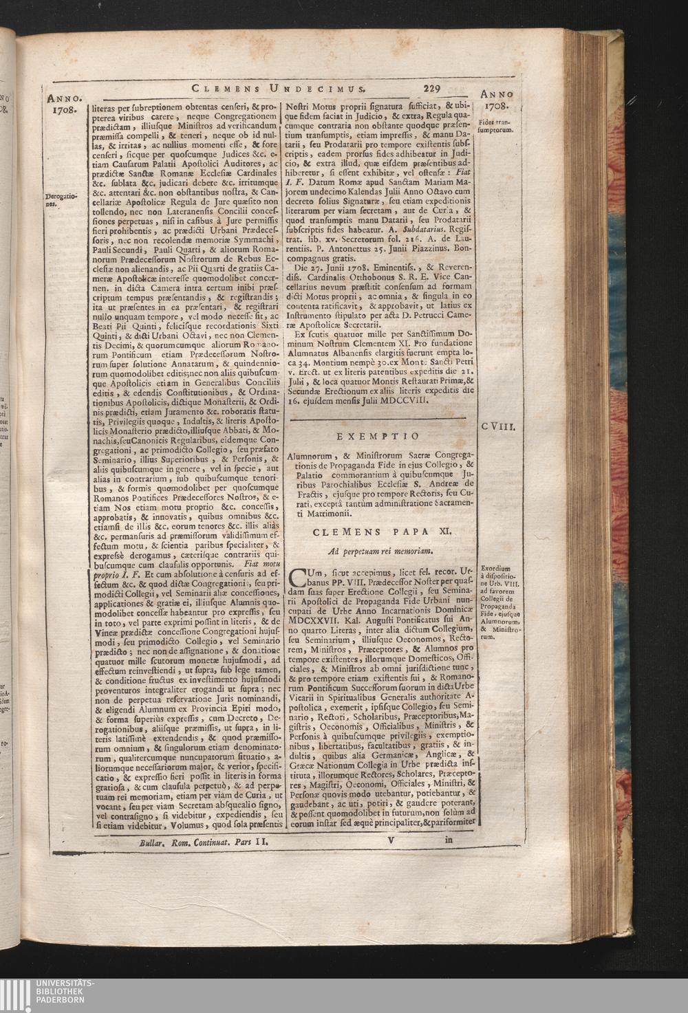 108. Cum, sicut &c. Exemptio alumnorum, & Ministrorum Sacrӕ Congregationis de Propaganda[...]