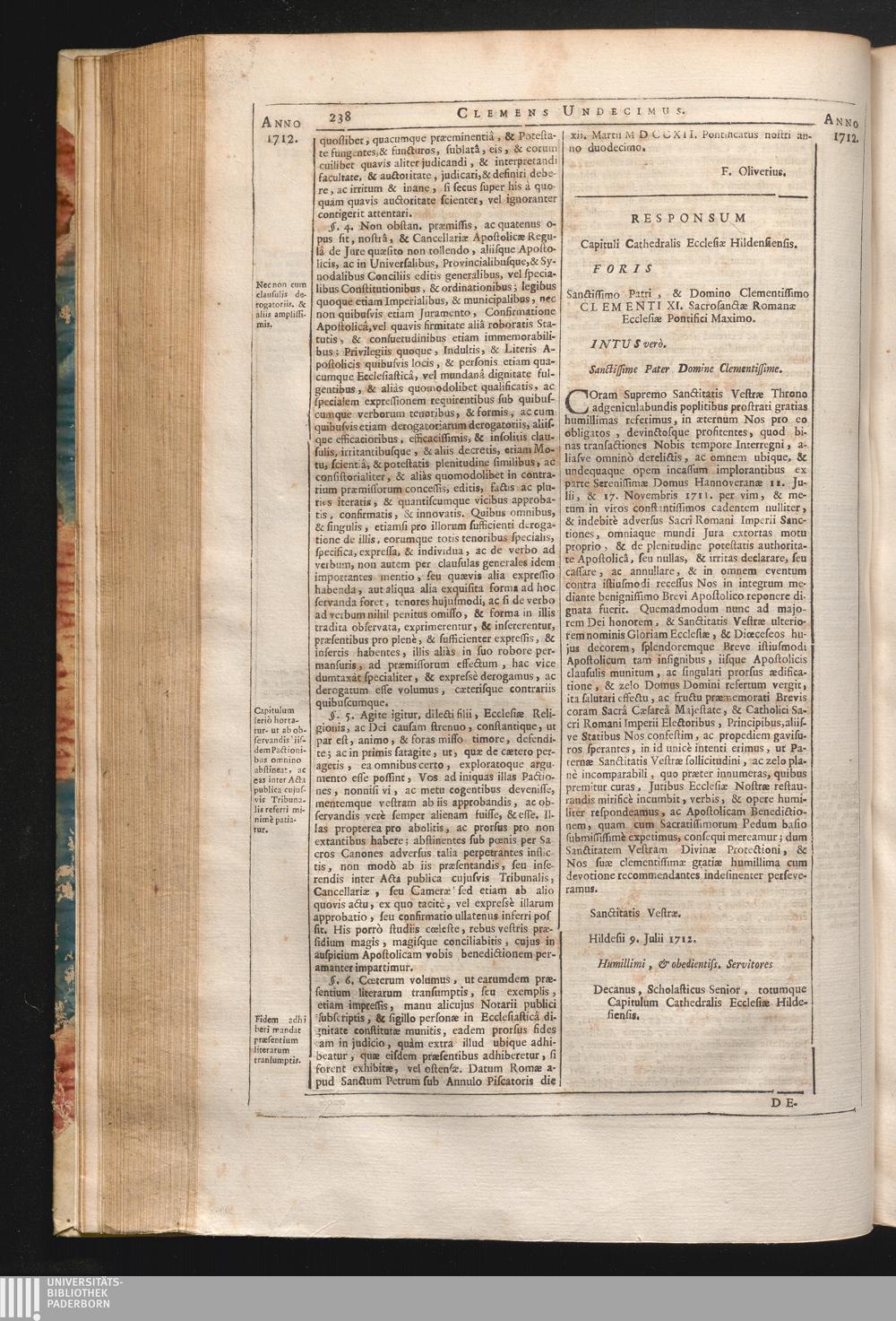 Coram supremo & c. Responsum Capituli Cathedralis Ecclesiӕ Hildensiensis.