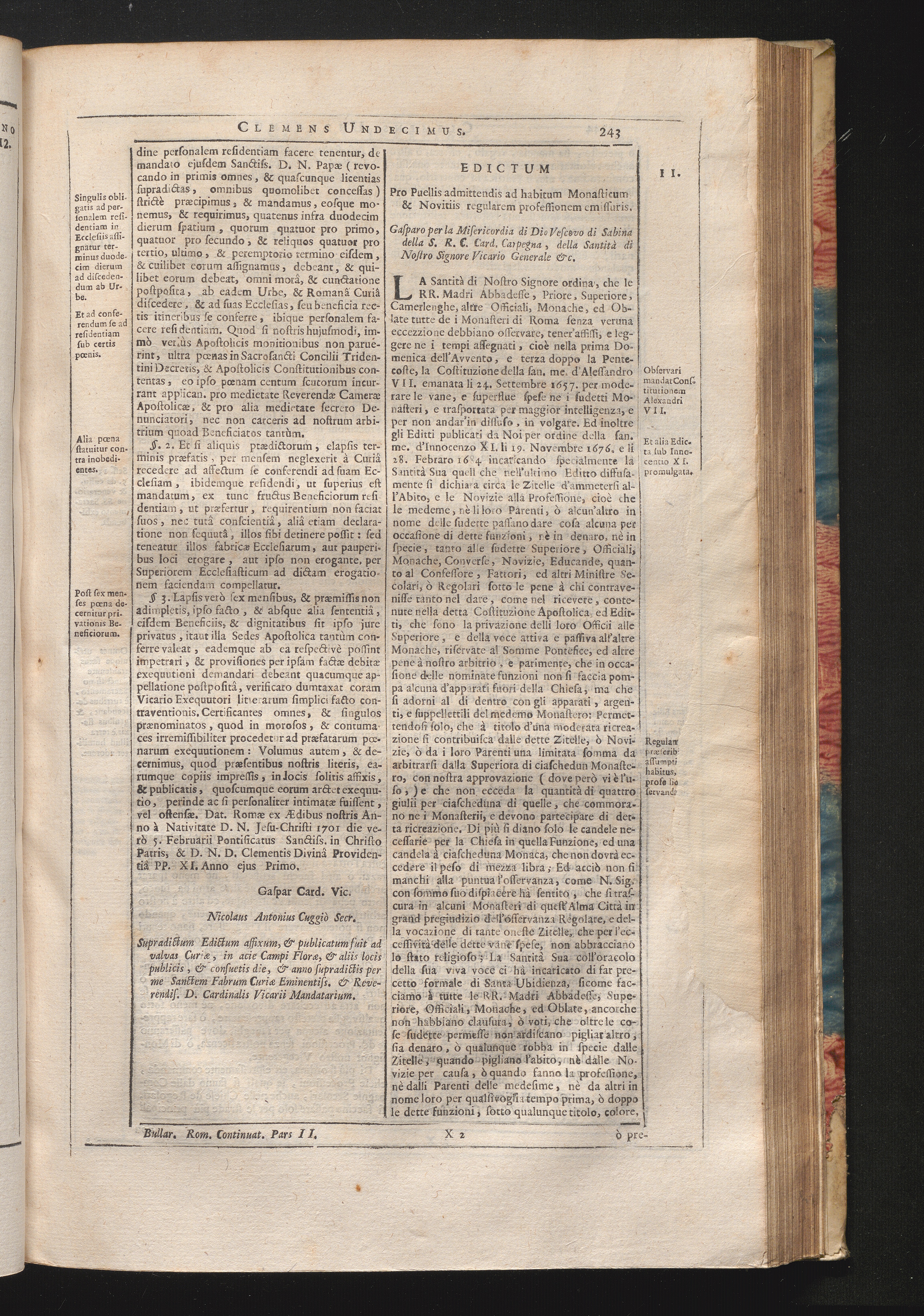 2. La Santità di Nostro &c. Edictum pro Puellis admittendis ad habitum Monasticum,[...]