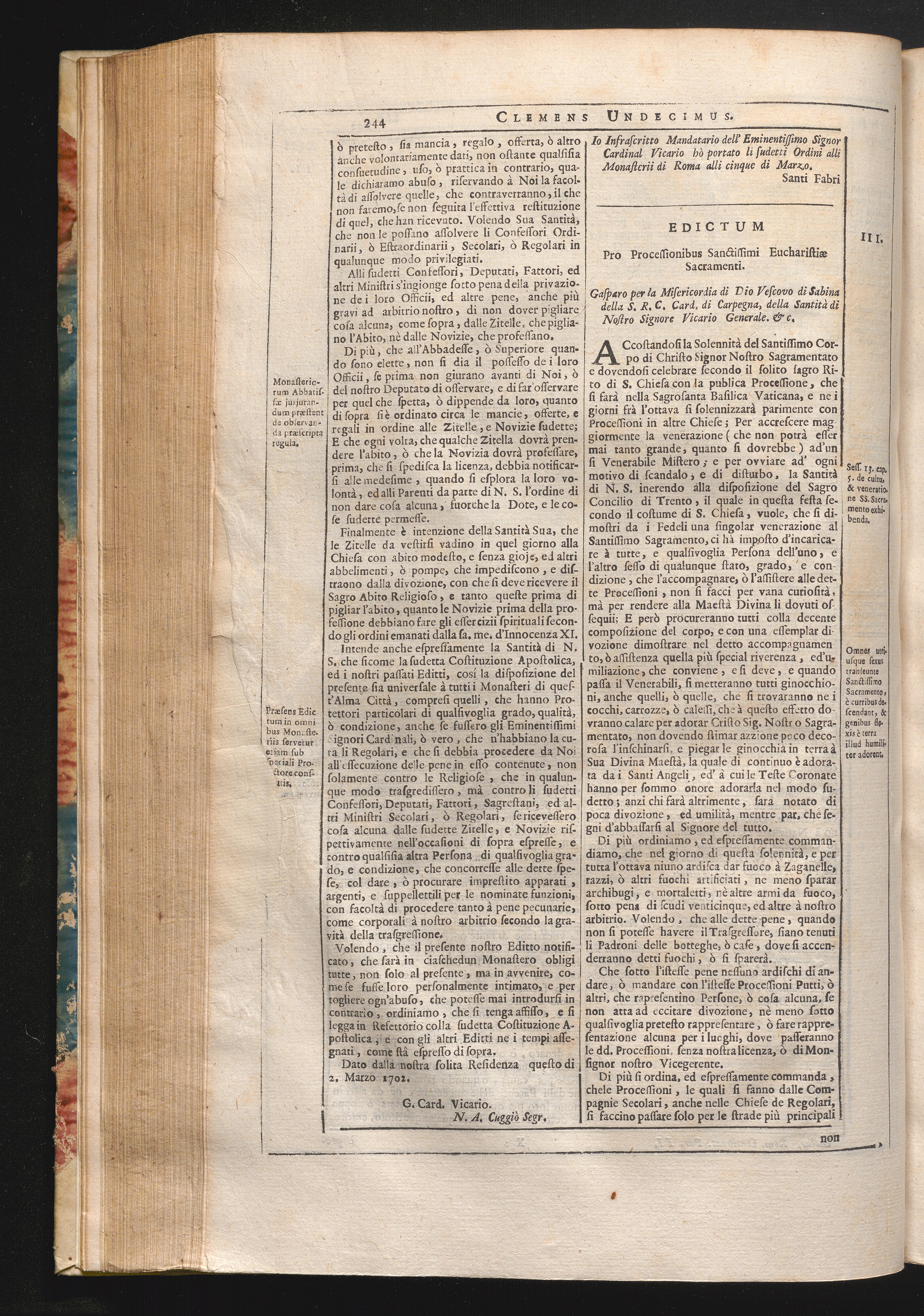 3. Accostandosi la Solenita &c. Edictam pro Processionibus Sanctissimi Eucharistiӕ[...]