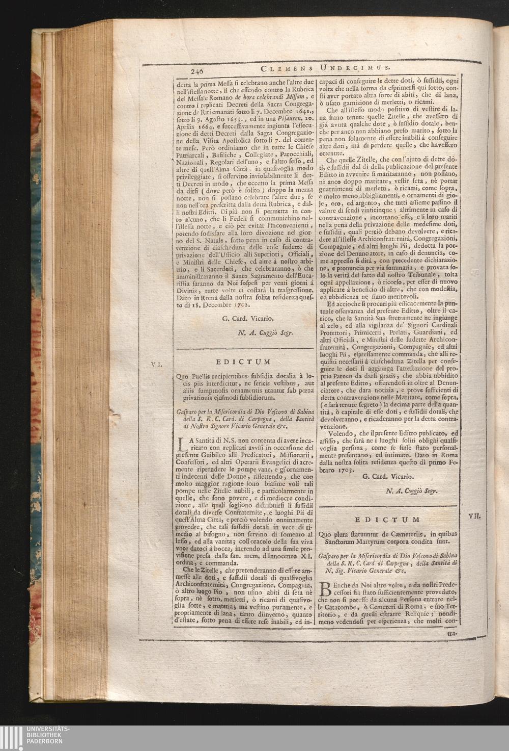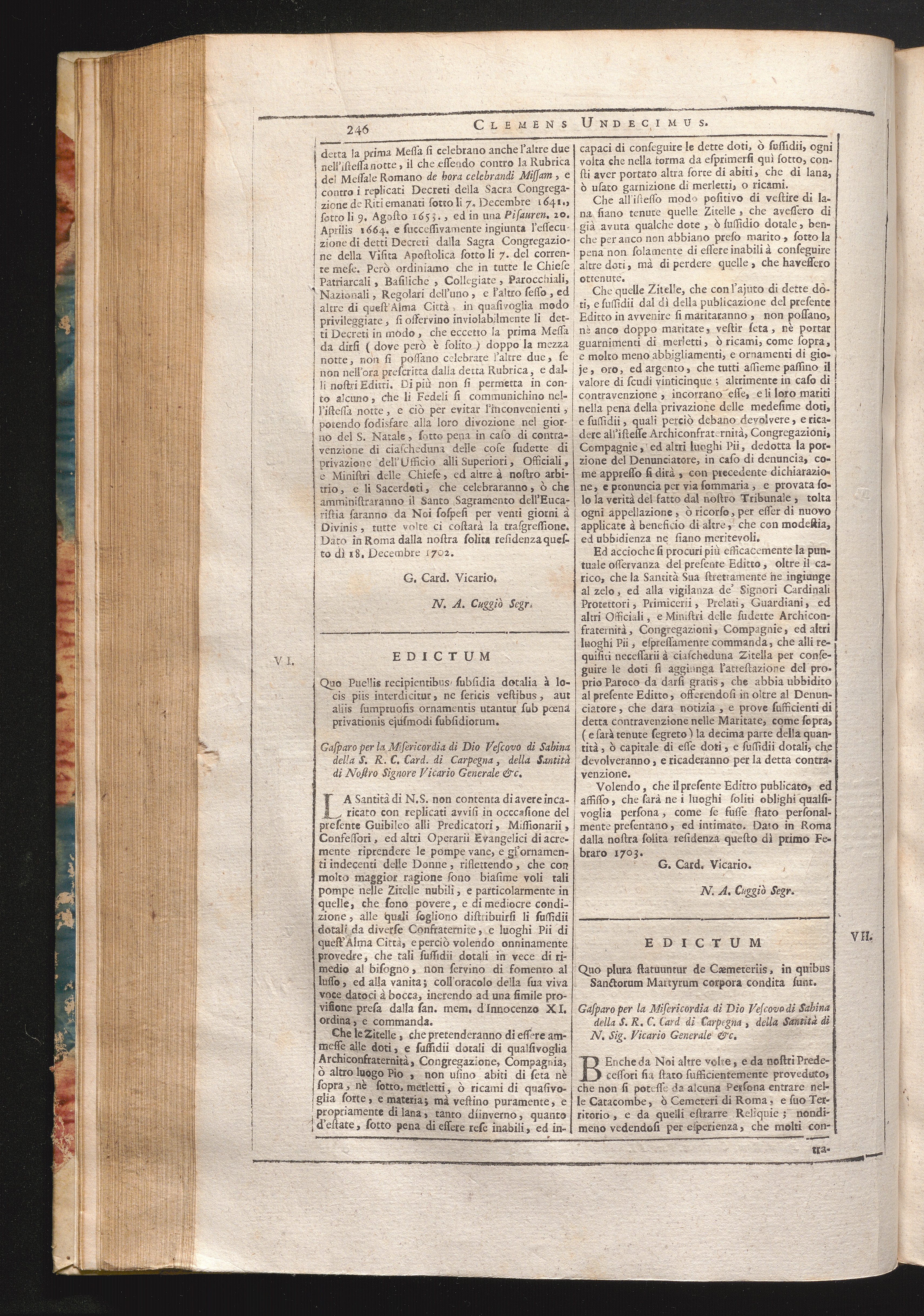 7. Benche da Noi &c. Edictum quo plura statuuntur de Cӕmeteriis, in quibus Sanctorum[...]