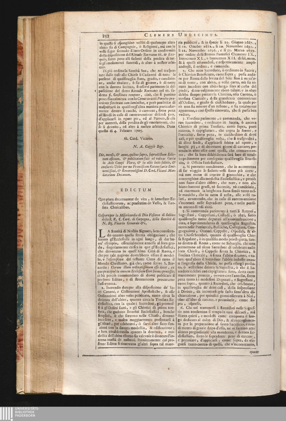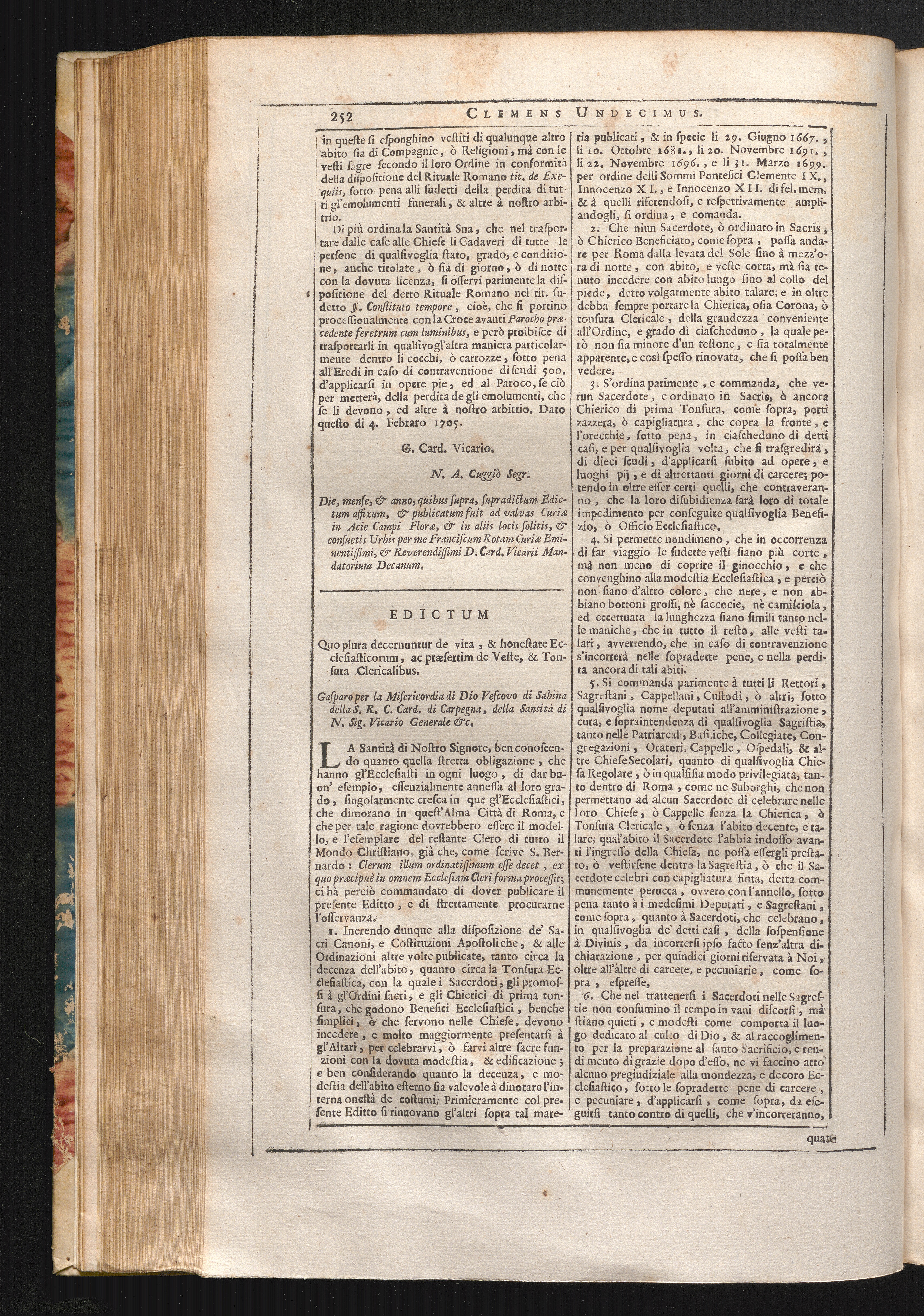 11. La Santità di N. S. &c. Edictum quo plura decernuntur de vita, & honestate Ecclesiasticorum,[...]