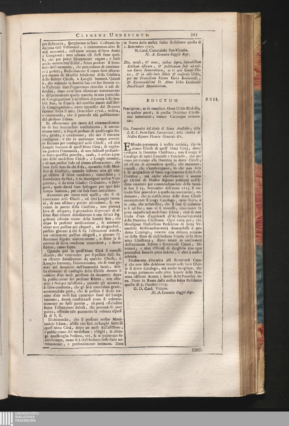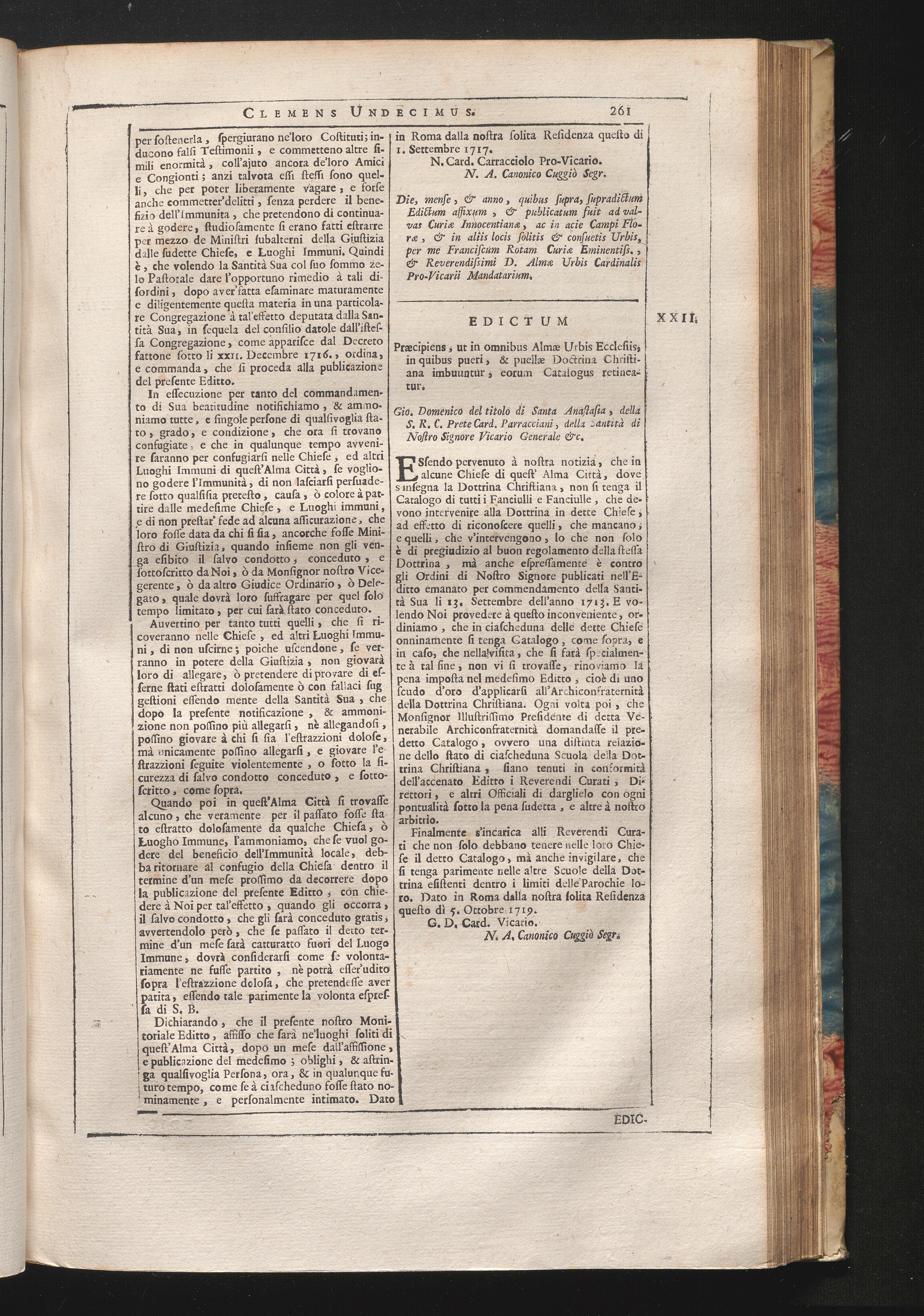 22. Essendo pervenuto &c. Edictum prӕcipiens, ut in omnibus Almӕ Urbis Ecclesiis,[...]