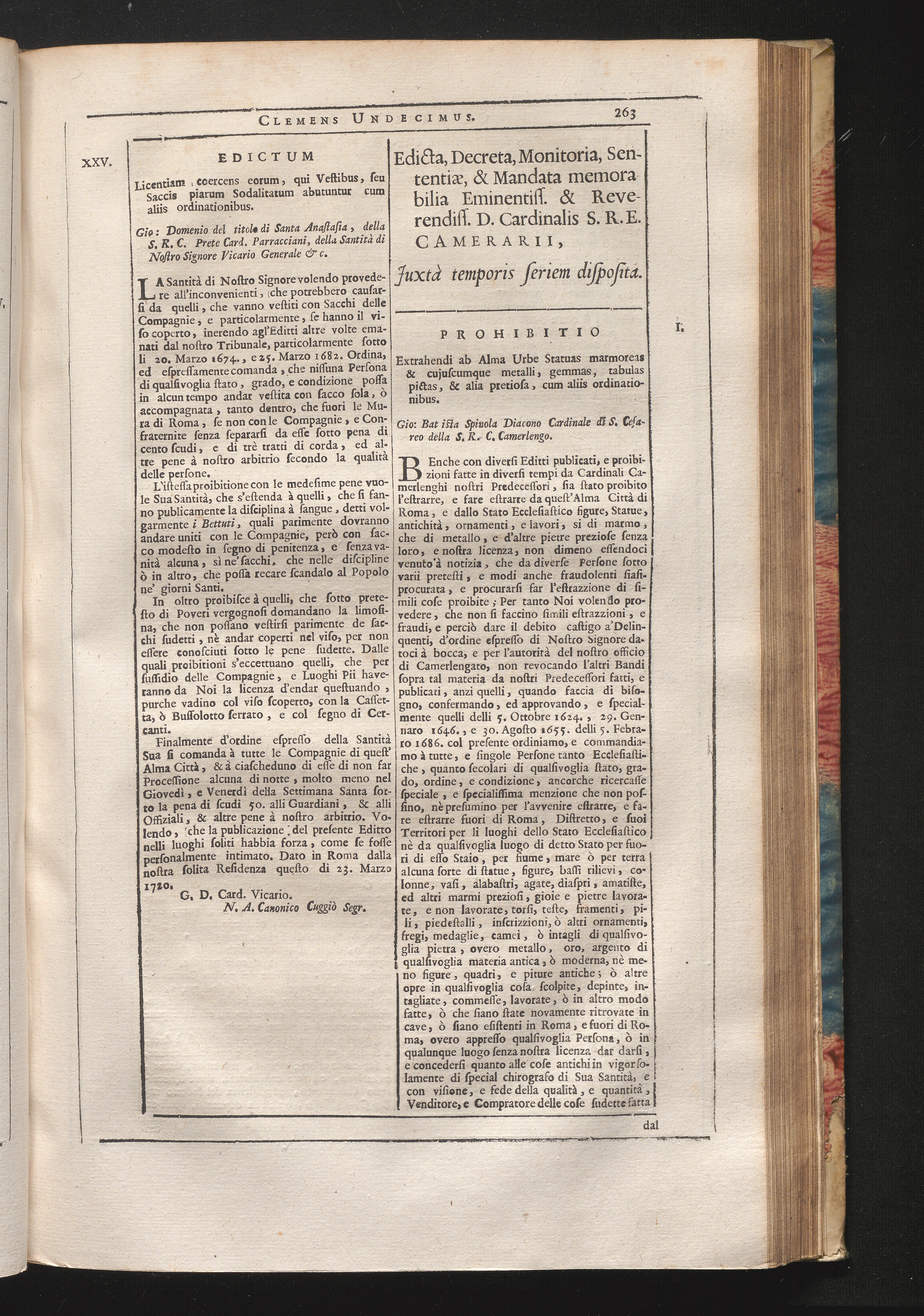 26. Benche con diversi &c. Prohibitio extrahendi ab Alma Urbe Statuas marmoreas &[...]