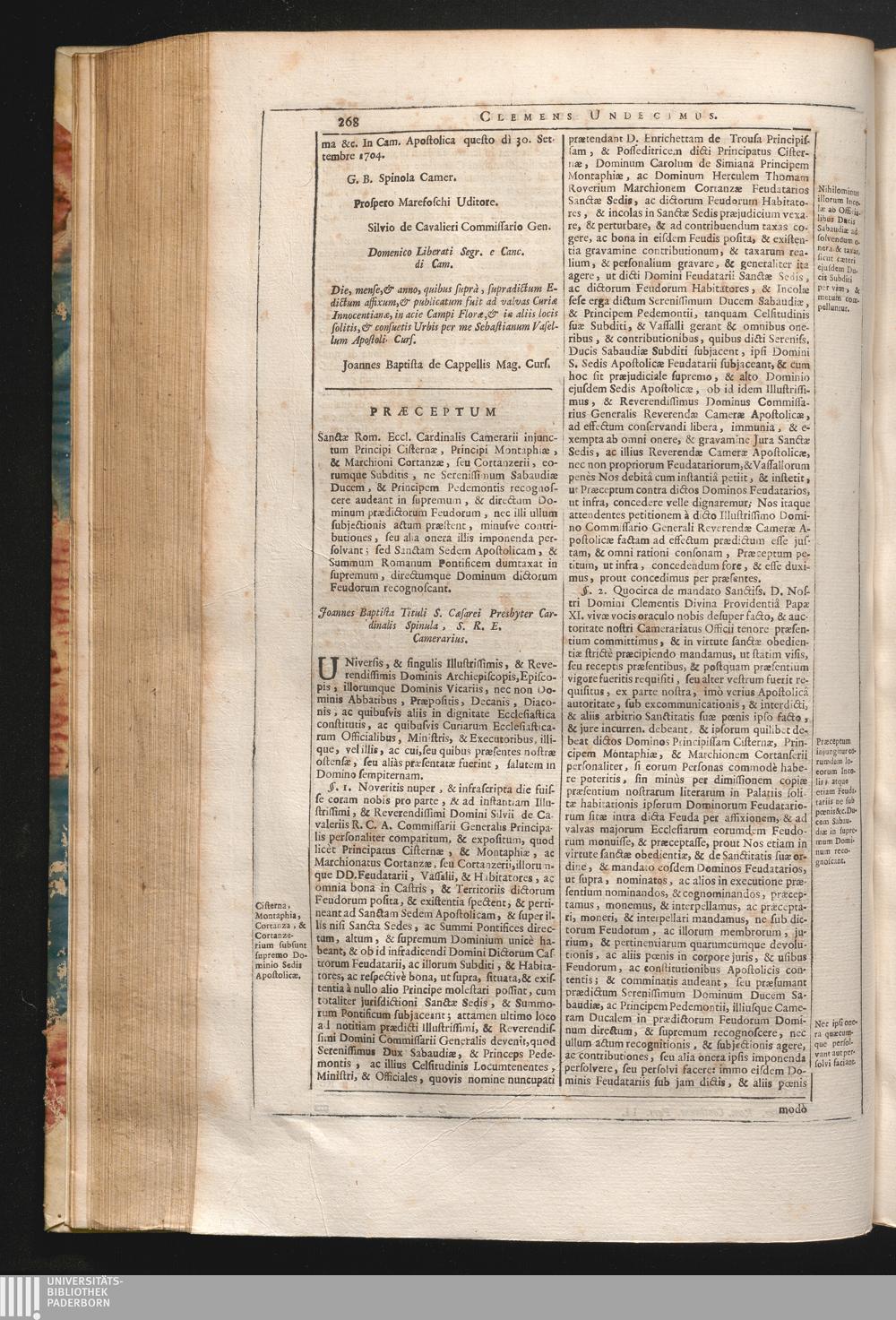 29. Universis, & singulis &c. Prӕceptum Sanctӕ Rom. Eccl. Cardinalis Camerarii injunctum[...]