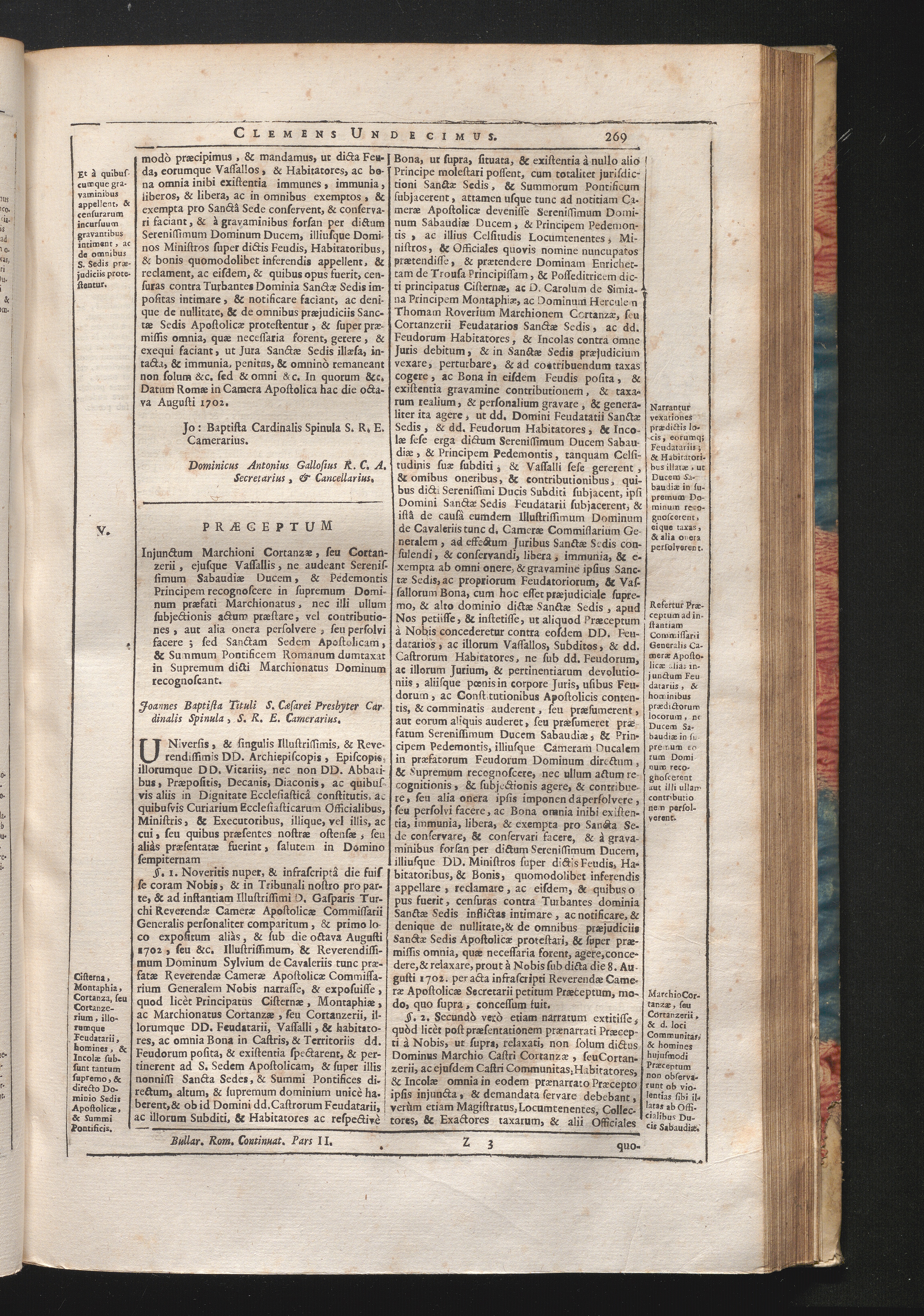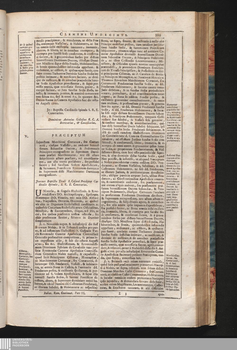 30. Universis & singulis &c. Prӕceptum Injunctum Marchioni Cortanzӕ, seu Cortanzerii,[...]