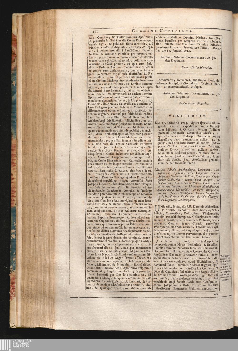 54. Universis, & singulis &c. Monitorium die 13. Octobris 1713. vigore specialis[...]