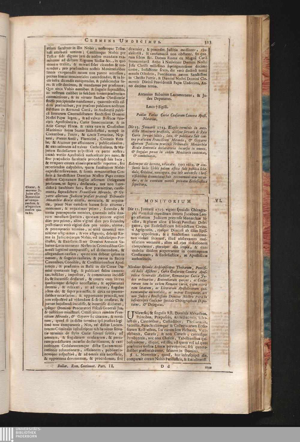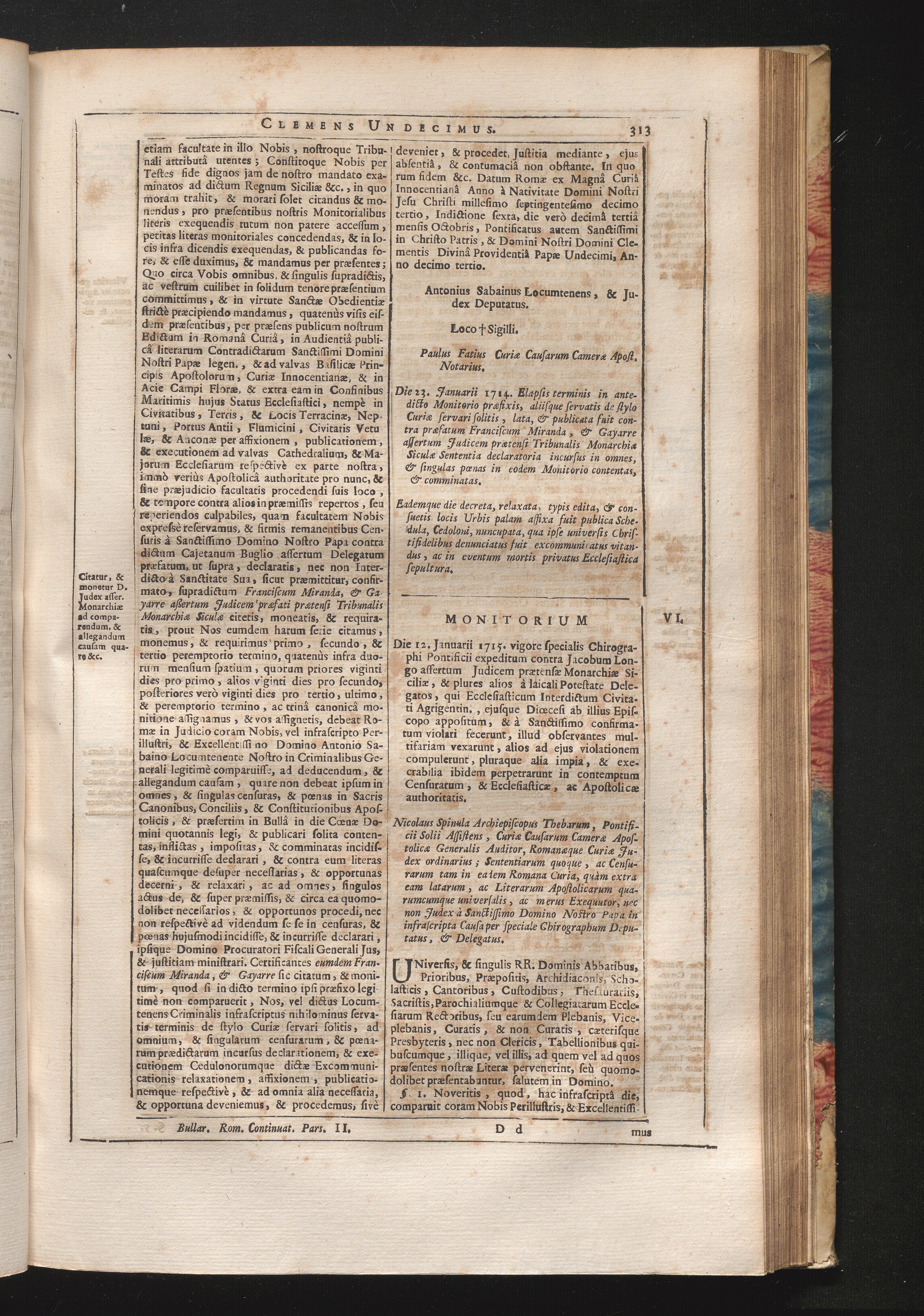 55. Universis, & singulis &c. Monitorium die 12. Januarii 1715. vigore specialis[...]