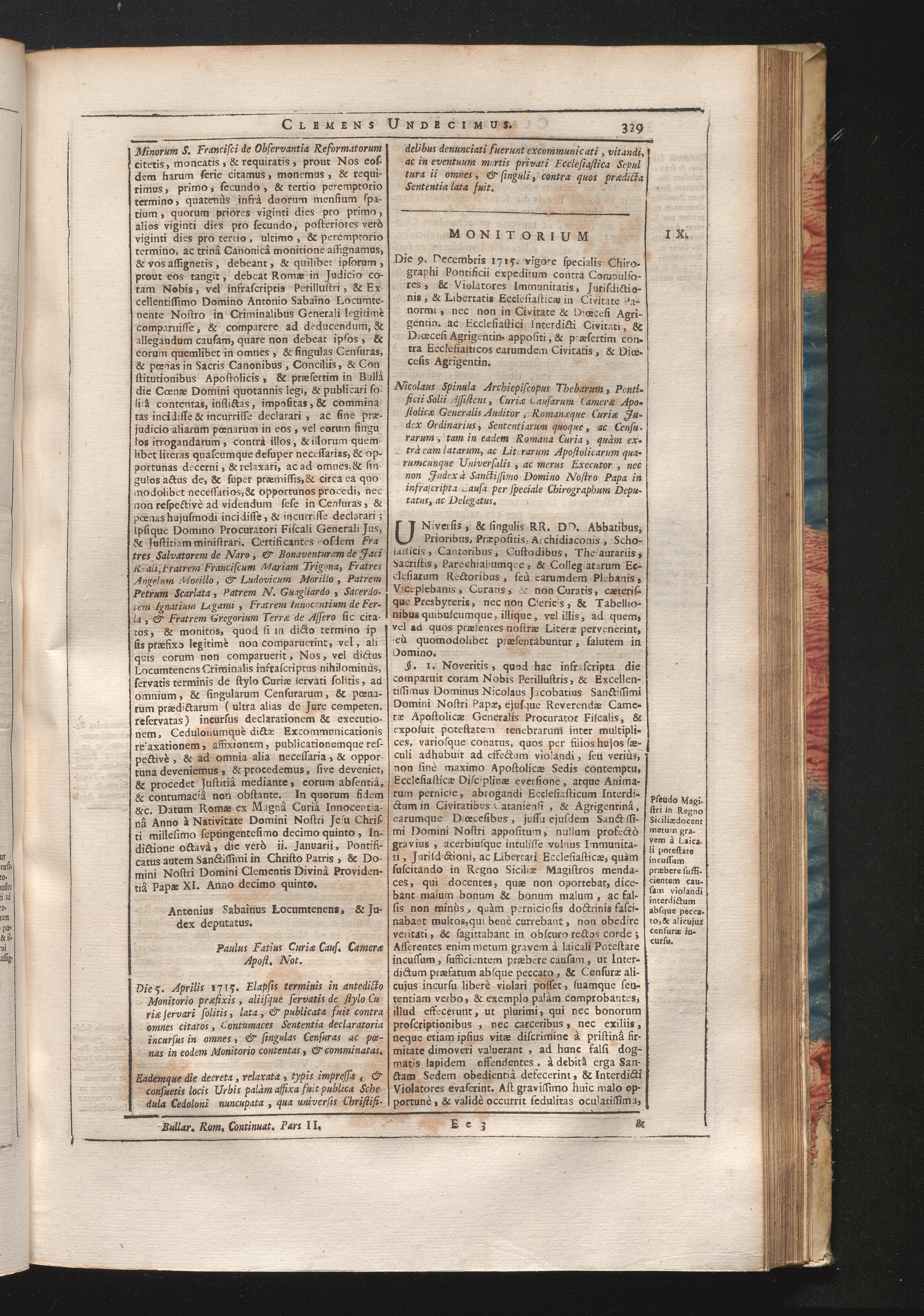58. Universis, & singulis &c. Monitorium die 9. Decembris 1715. vigore specialis[...]