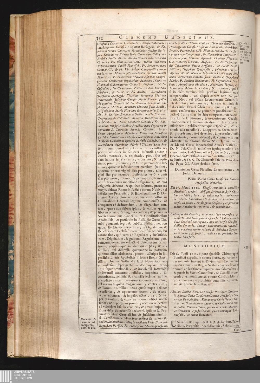 61. Universis, & singulis &c. Monitorium die 6. Junii 1716. vigore specialis Chirographi[...]