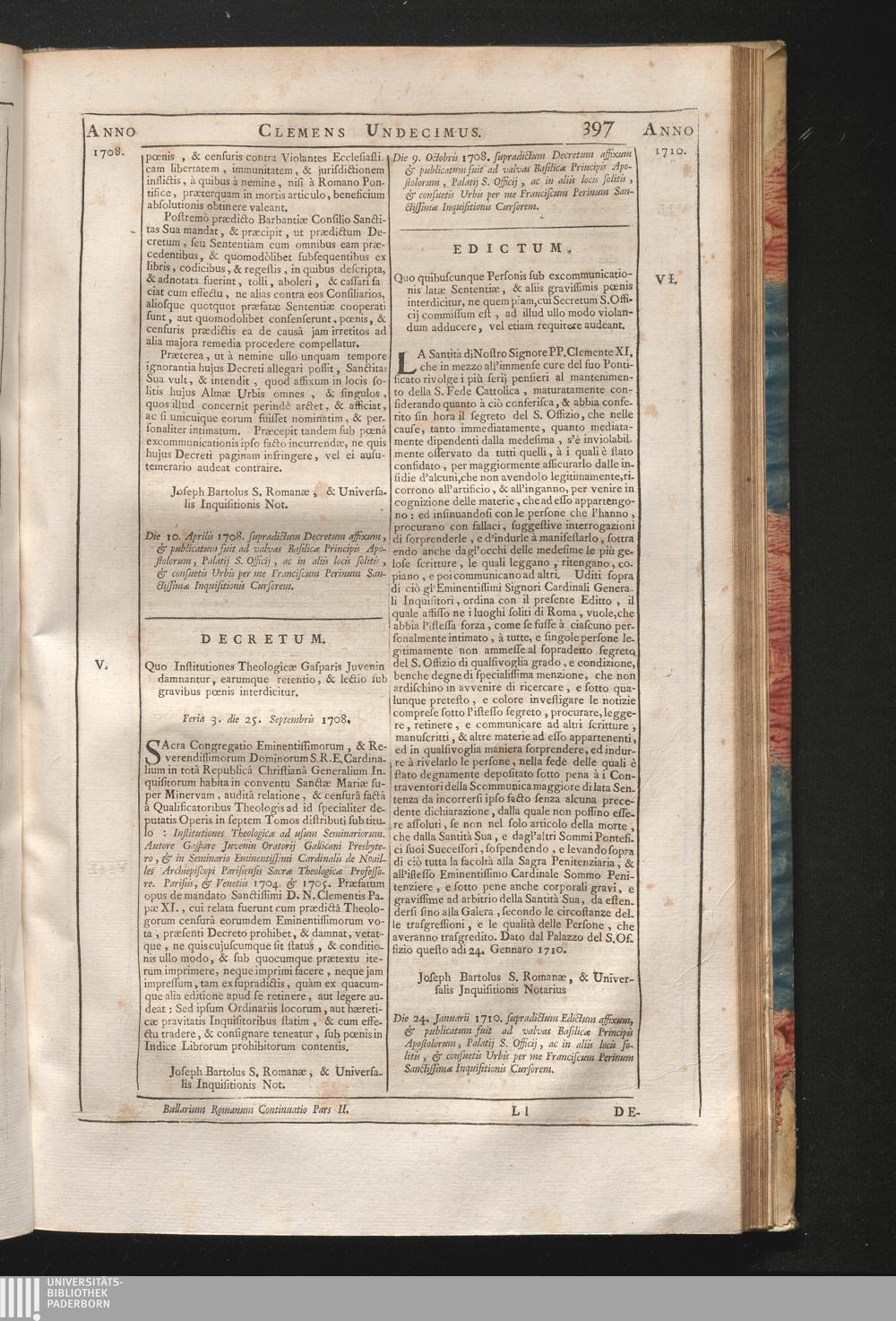 Pars Tertia. Complectitur Edicta, Declarationes, & Decreta memorabilia, quӕ Clemente[...]