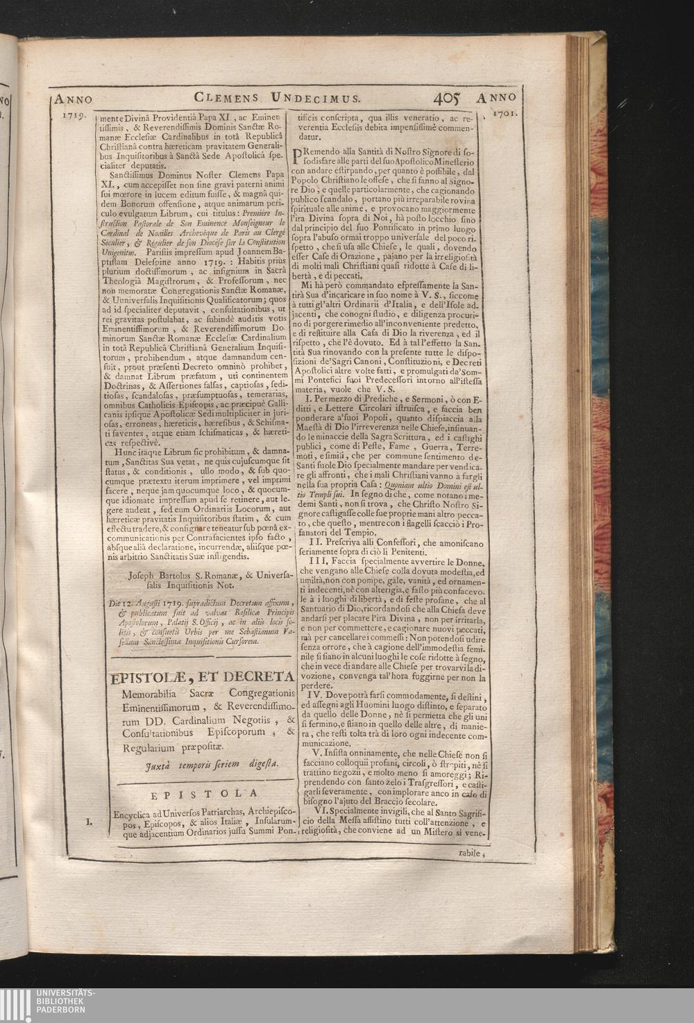 15. Premendo alla Santità &c. Epistola Encyclica ad universos Patriarchas, Archiepiscopos,[...]