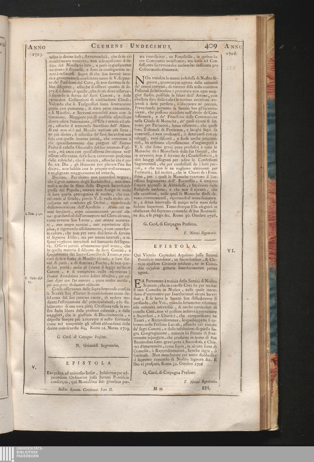 20. Ea pervenuto &c. Epistola quâ Vicario Capitulari Aquilano jussu Summi Pontificis[...]