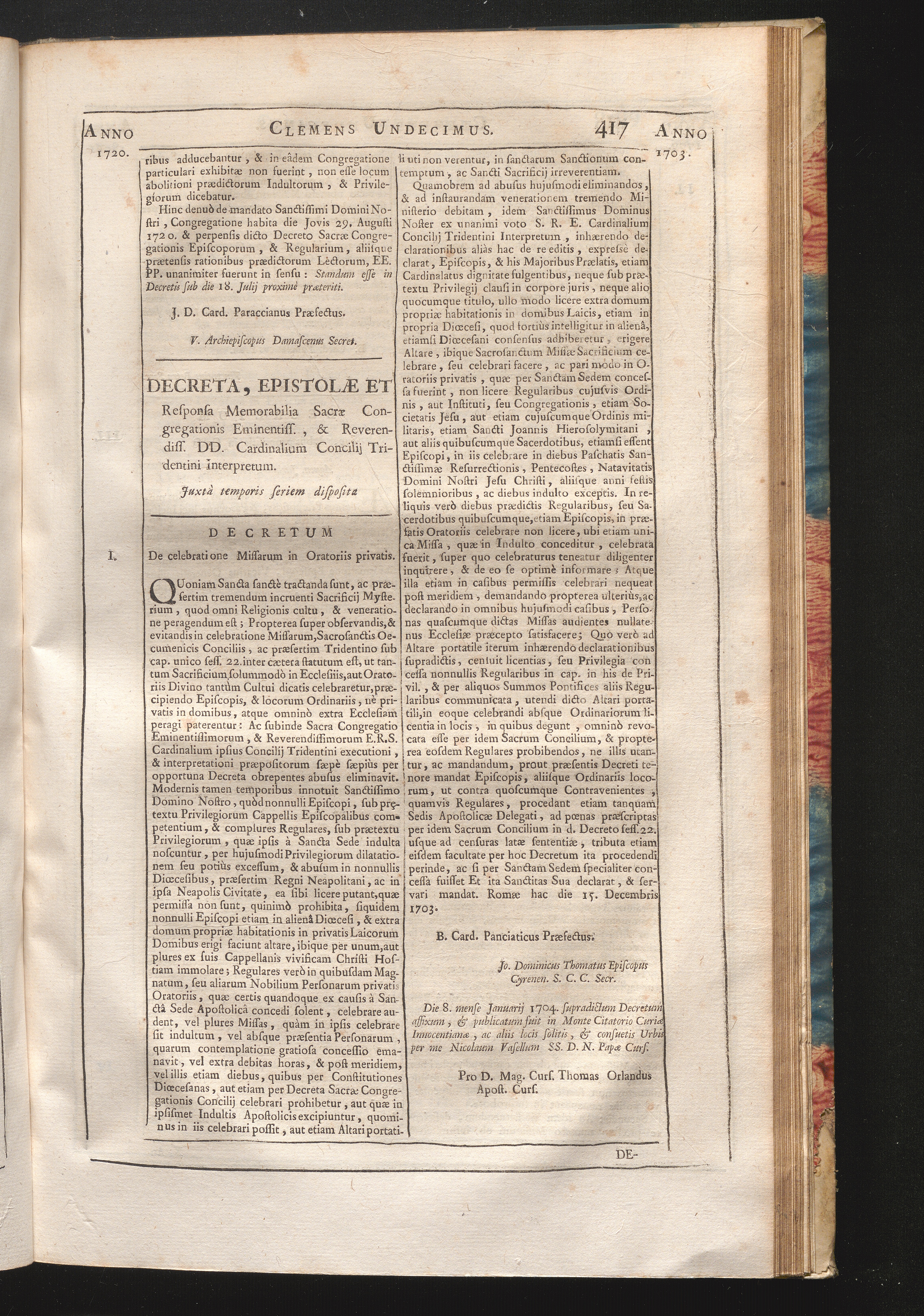 Index Initiorum quarumcumque Constitutionum, ac Rubricarum eorundem Clementi XI.