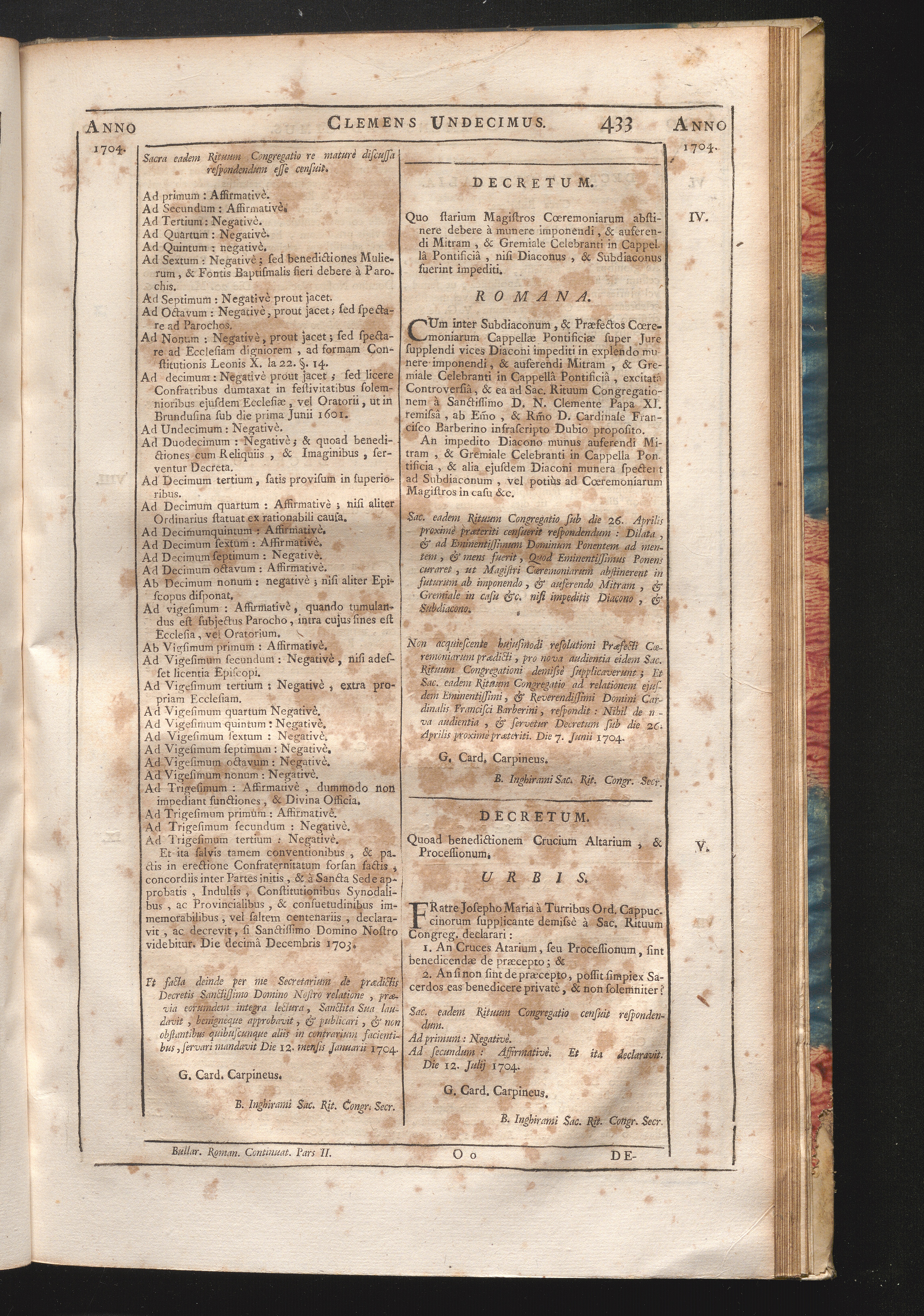 54. Fratre Josepho &c. Decretum quoad benedictionem Crucium Altarium, & Processi[...]
