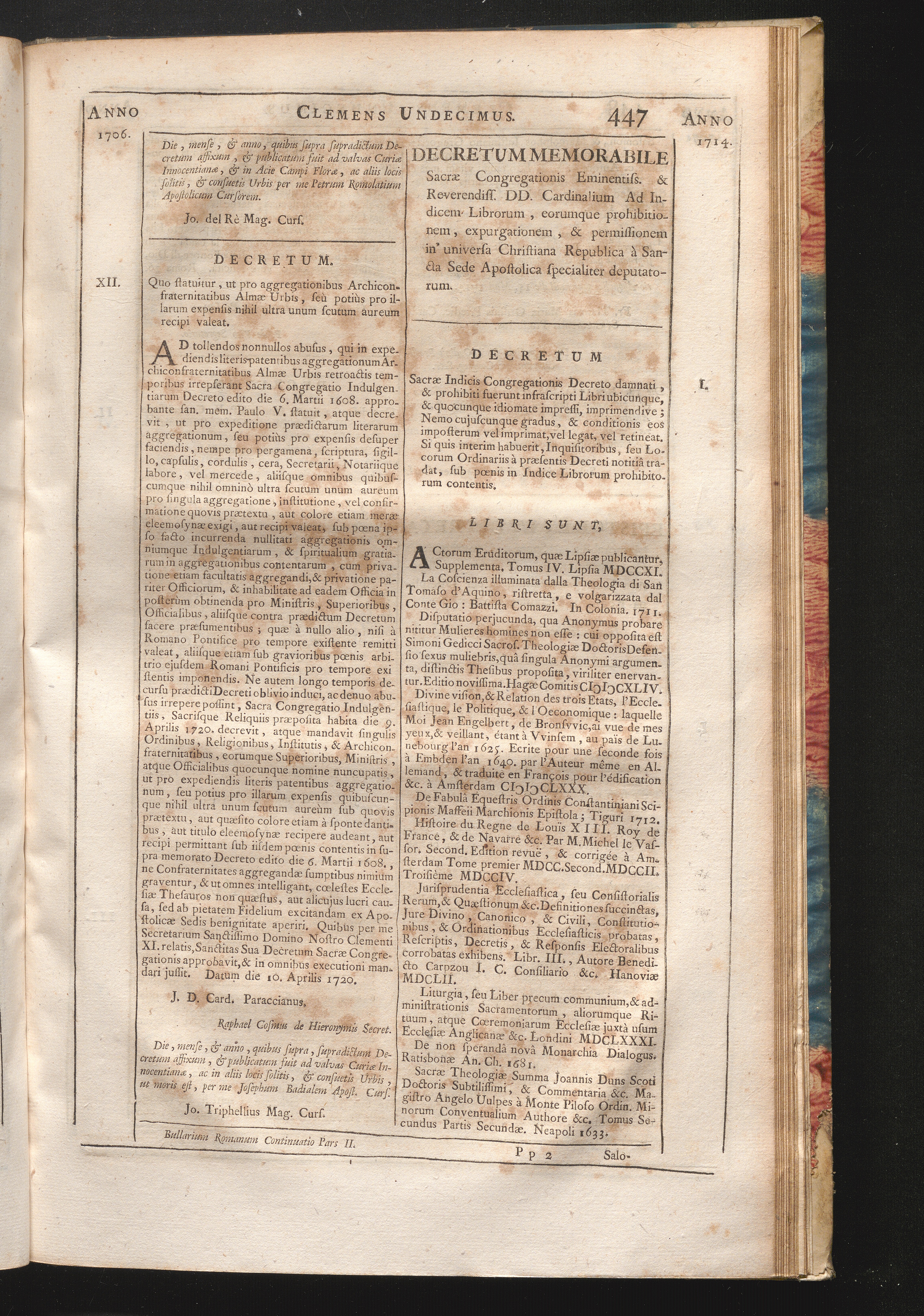 93. Actorum eruditorum &c. Decretum Sacrӕ Indicis Congregationis Decreto damnati,[...]