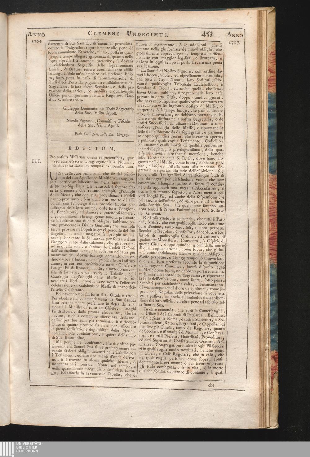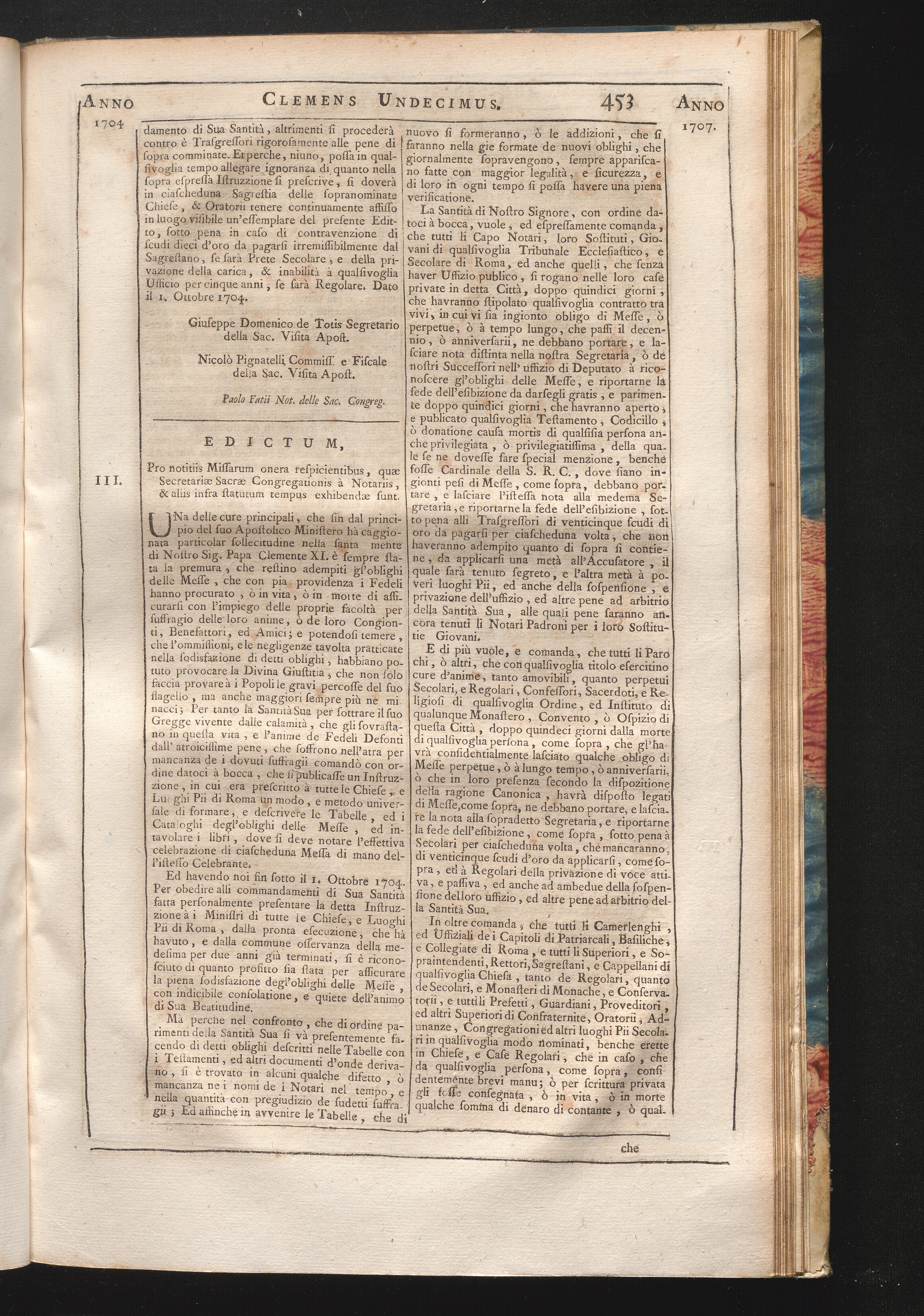 105. Una delle cure &c. Edictum pro notitiis Missarum onera respicientibus, quӕ Secretariӕ[...]
