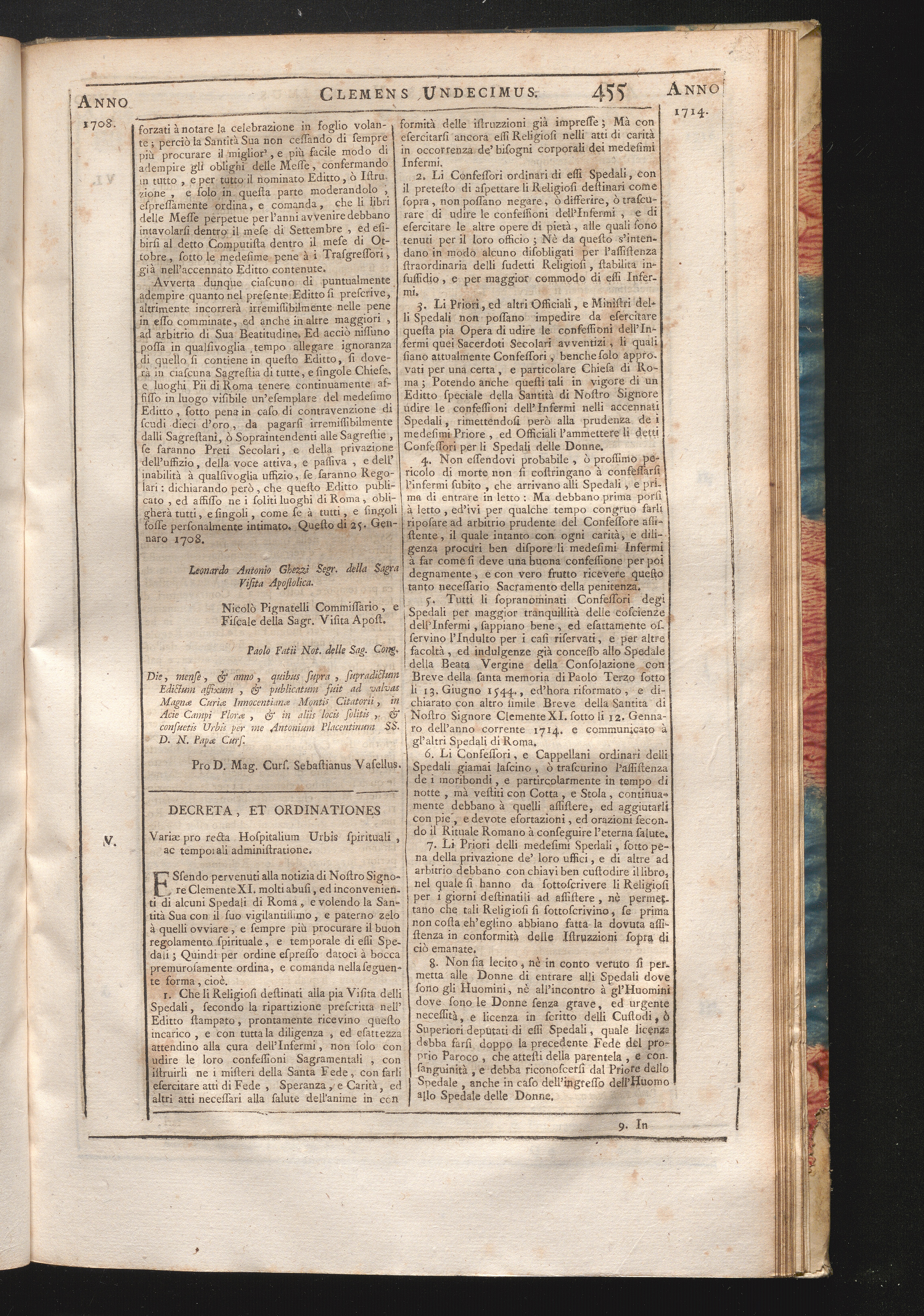 107. Essendo pervenuti &c. Decreta & Ordinationes variӕ pro recta Hospitalium Urbis[...]