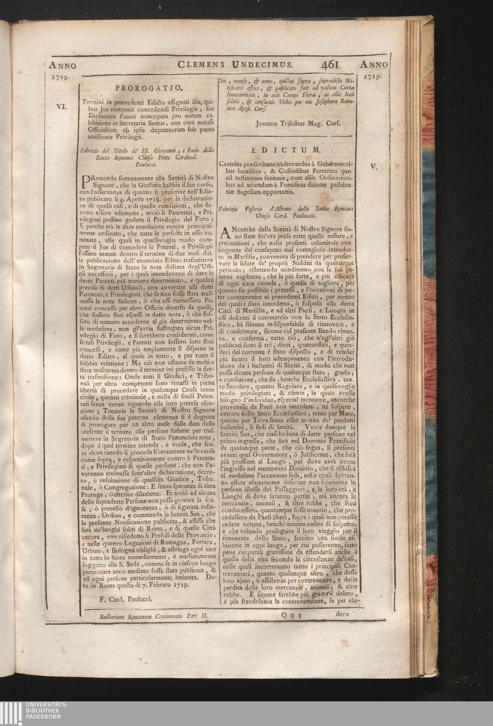 116. Ancorche della Santità &c. Edictum cautelas prӕscribens observandas à Gubernatoribus[...]