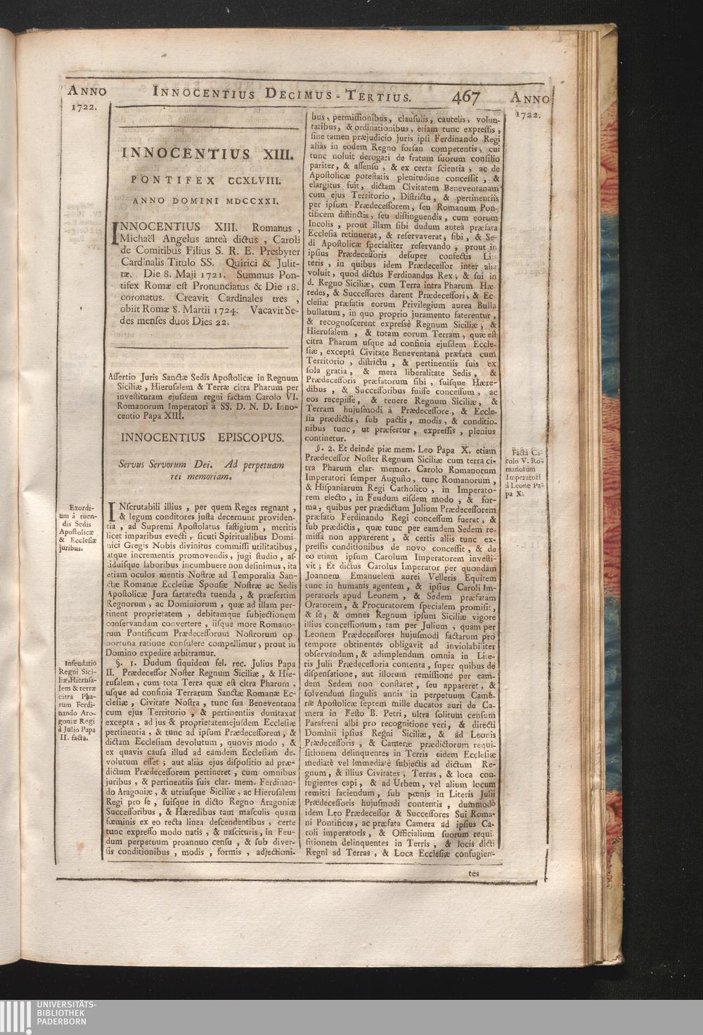Inscrutabili illius &c. Assertio Juris Sanctӕ Sedis Apostolicӕ in Regnum Siciliӕ,[...]