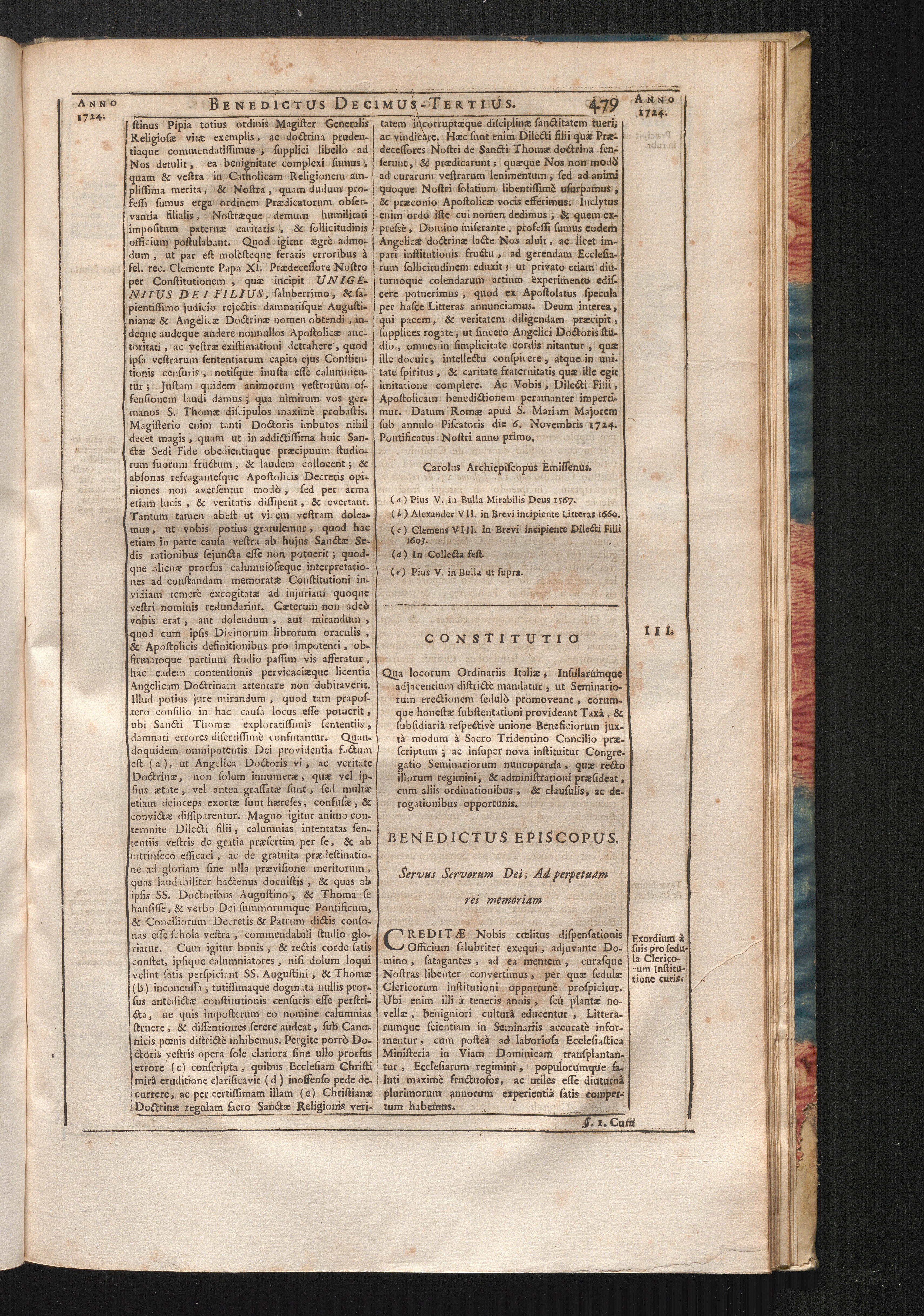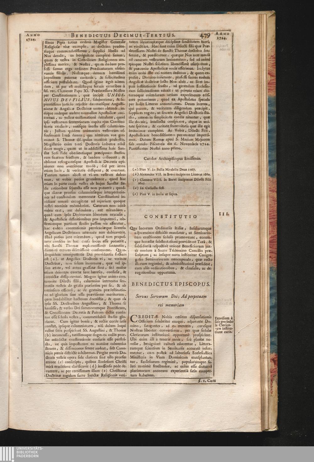 3. Creditӕ Nobis &c. Constitutio qua locorum Ordinariis Italiӕ, Insularumque adjacentium[...]